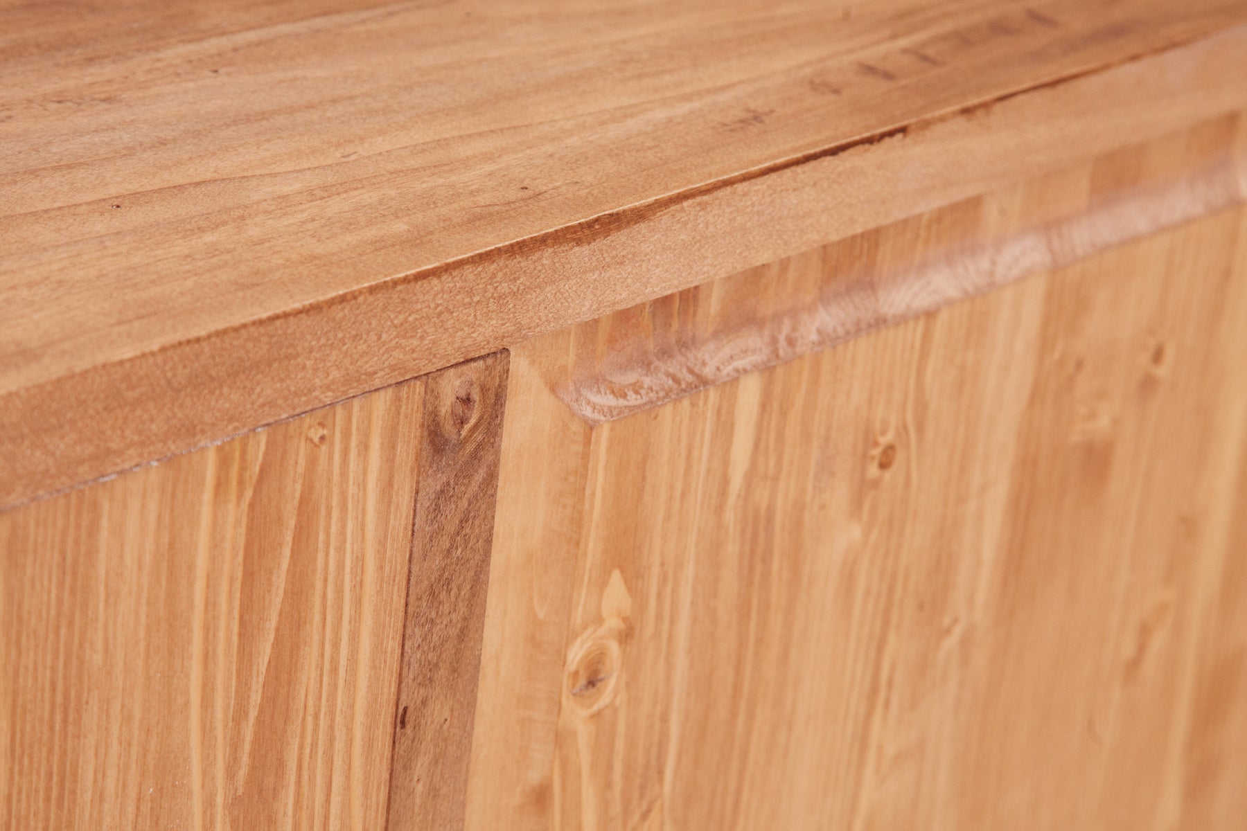 Mobile porta tv L129xPR40xH60 cm interamente prodotto in legno massello di tiglio. Dotato di quattro funzionali cassetti laterali realizzati con incastri a coda di rondine e pomelli in legno e due versatili ripiani centrali a giorno. La cura dei minimi particolari e la solidità proprie della lavorazione artigianale Made in Italy unite al sobrio design in stile Country, lo rendono ideale per arredare qualsiasi ambiente.