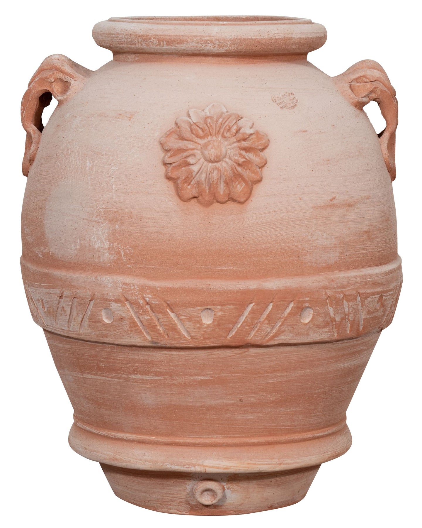 Vaso orcio conca realizzato a mano con argilla toscana in galestro antigeliva, di dimensioni diametro 43 cm, altezza 55 cm. La realizzazione e la cottura seguono le vecchie tradizioni toscane. Qualità della terra e sistema di cottura rendono il prodotto molto resistente al gelo e a tutti gli agenti atmosferici. La lavorazione interamente fatta a mano rende ogni articolo un pezzo unico. Per gli amanti dell'arredamento country, shabby e per chi in generale ama arredare casa con rusticità, Biscottini propone una vastissima gamma di articoli da arredo interni ed esterni, indispensabili per arredare qualsiasi tipo di locali e ambienti. Tutte le misure si riferiscono all’ingombro massimo dell’articolo.