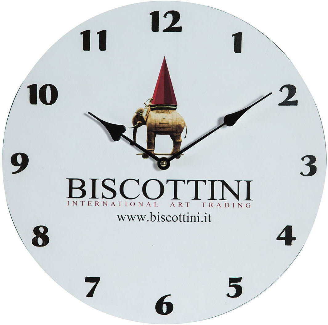 Orologio da appendere con meccanismo a batteria realizzato su base legno (mdf). Diam.34 cm.