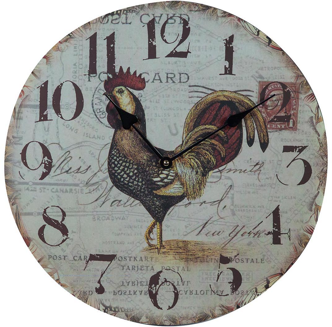 Orologio da appendere con meccanismo a batteria realizzato su base legno (mdf). Diam.34 cm.
