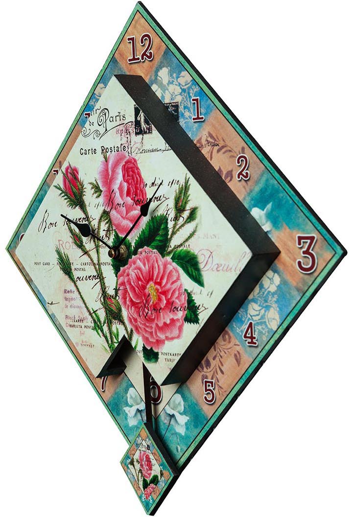 Orologio pendolo da appendere con meccanismo a batteria realizzato su base legno (mdf). Misura: L30xPR5,5xH30 cm.