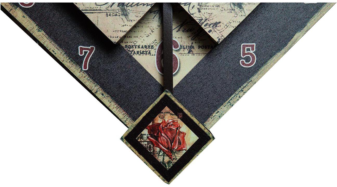 Orologio pendolo da appendere con meccanismo a batteria realizzato su base legno (mdf). Misura: L30xPR5,5xH30 cm.