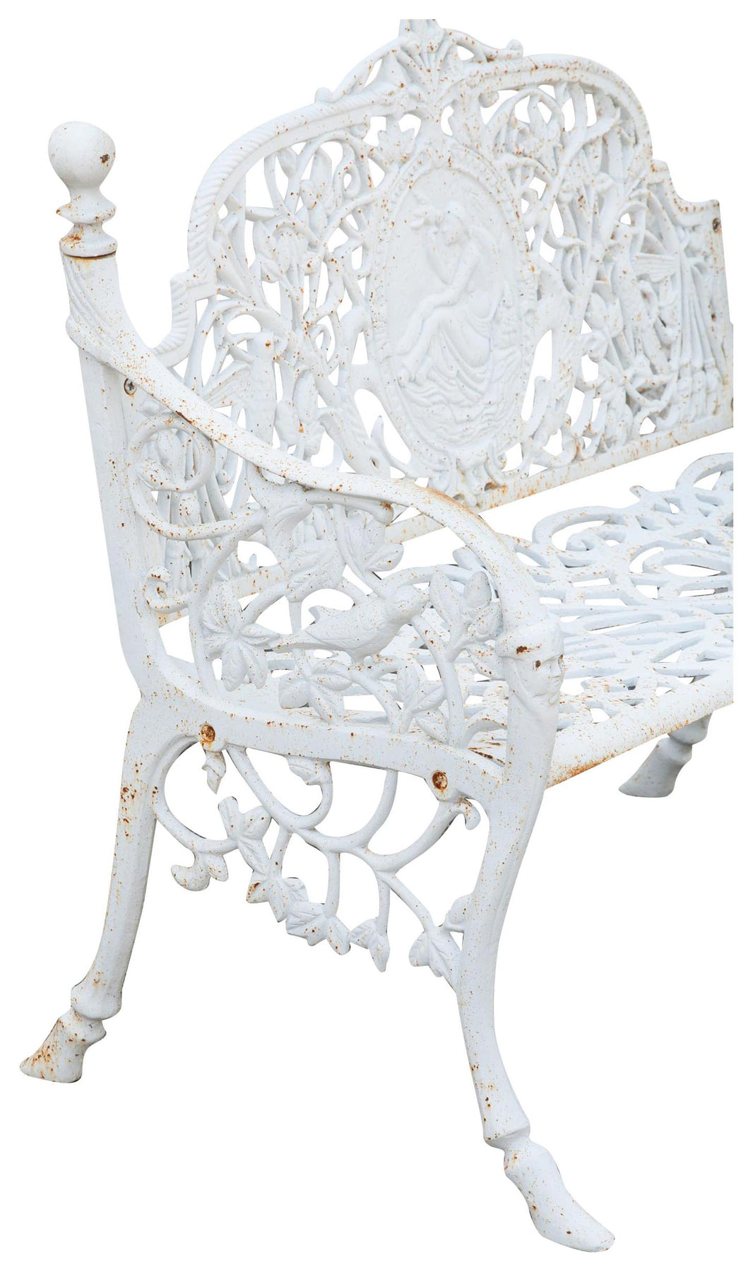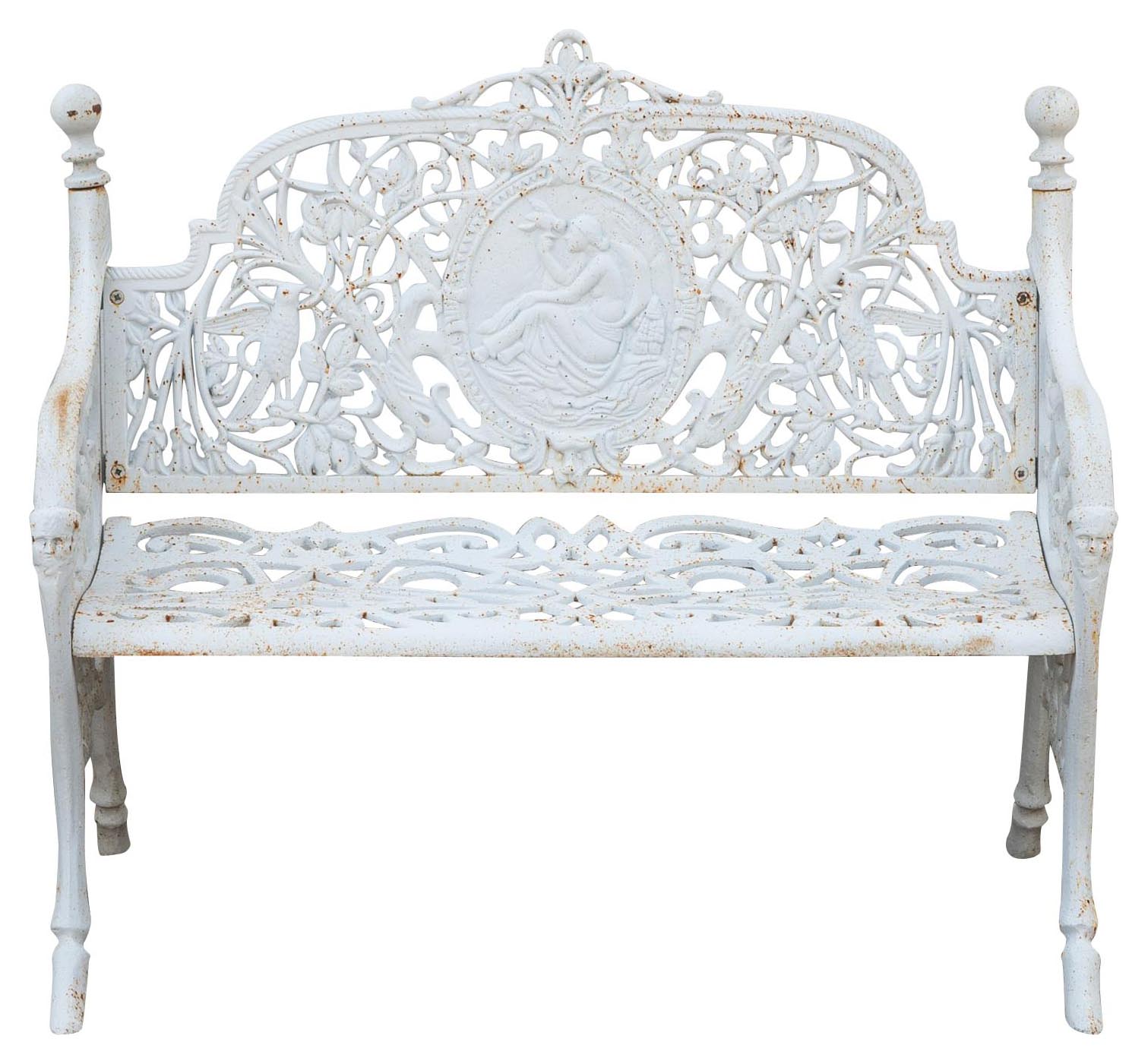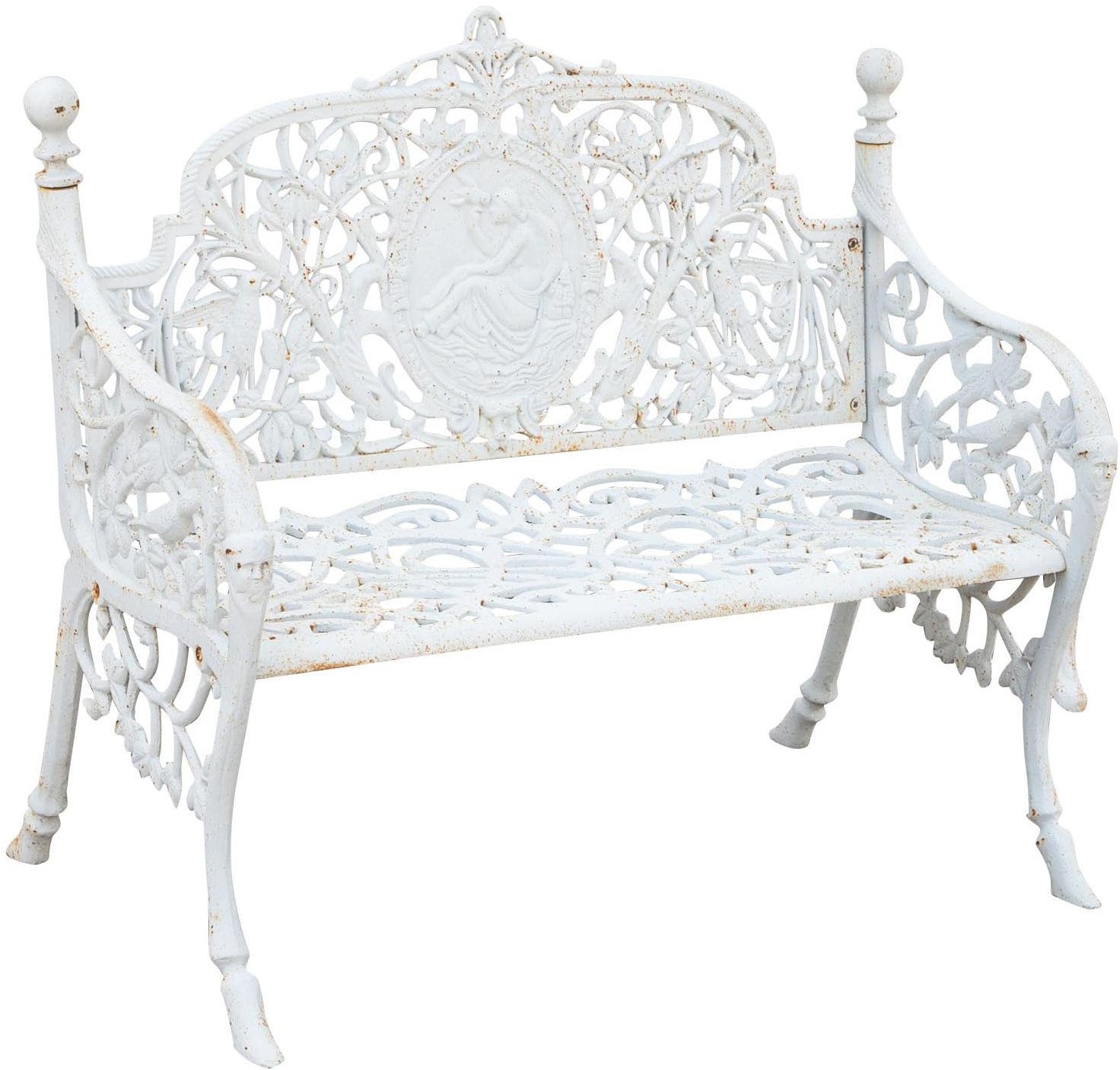 Robusta e stabile panca realizzata in ghisa di dimensioni larghezza 105 cm, profondità 62 cm, altezza 90 cm. Minuziosamente lavorata, replica il design delle antiche panchine del secolo scorso. Trattandosi di finiture artigianali, la finitura potrebbe non corrispondere fedelmente alle fotografie, presentando anche parti in ruggine naturale tali da rendere ogni articolo un pezzo unico. Arreda con eleganza qualsiasi ambiente esterno.