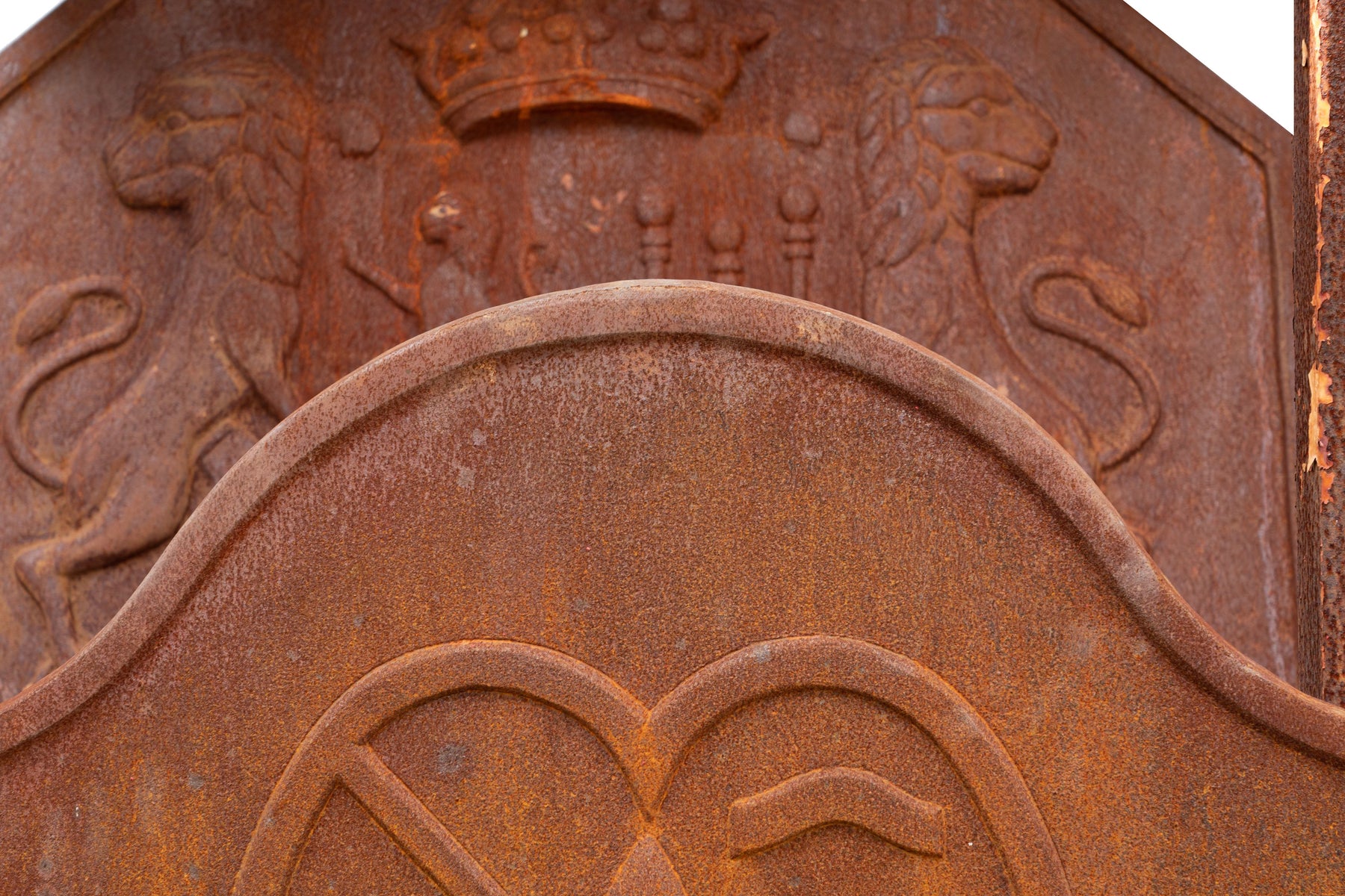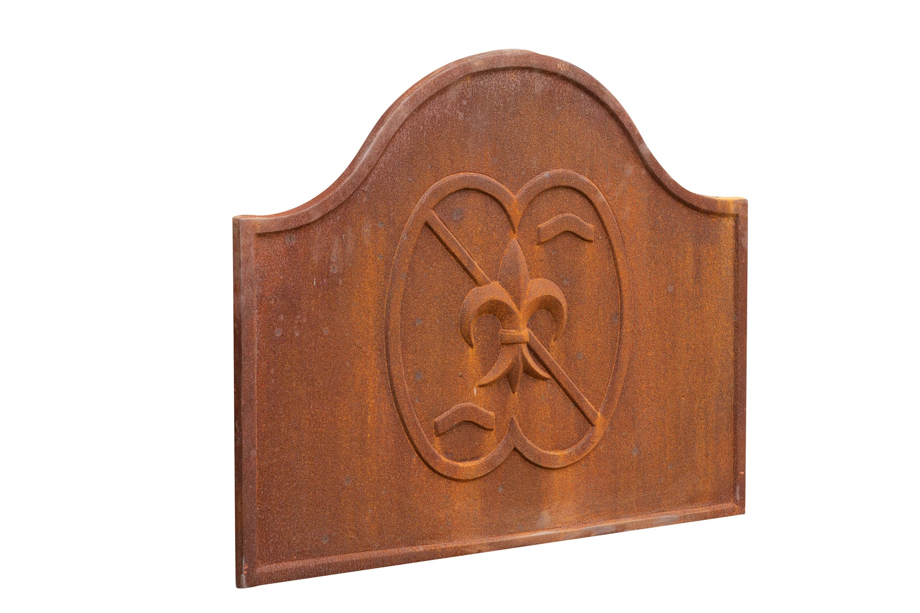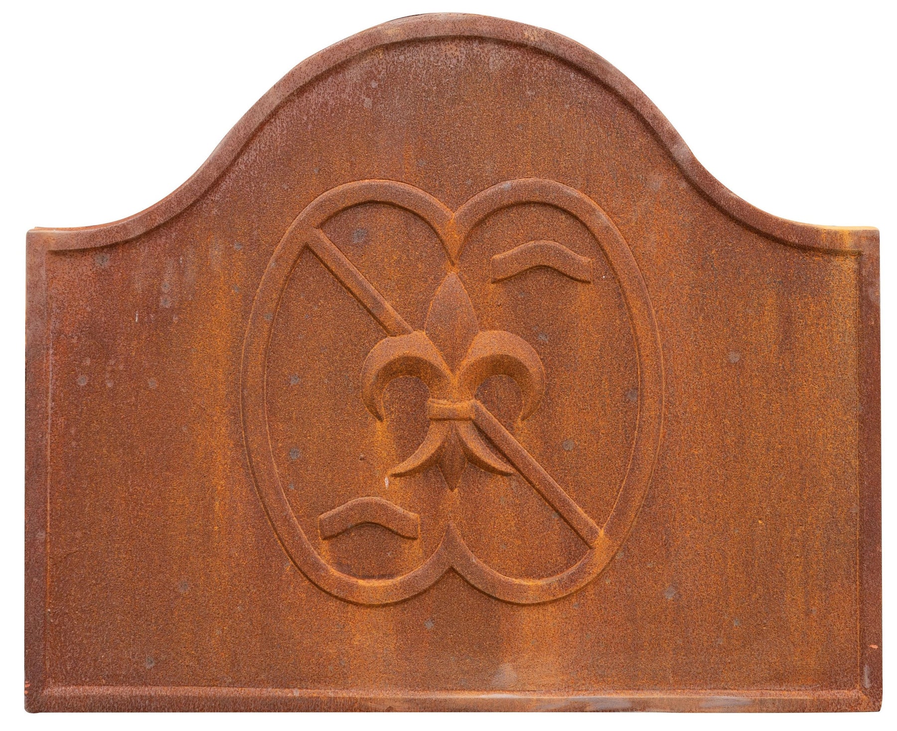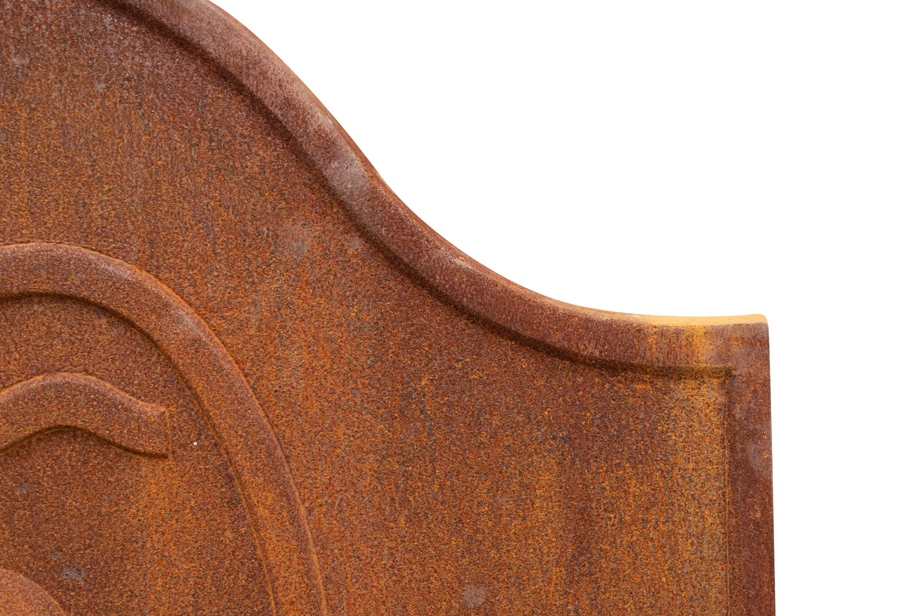 Piastre da camino realizzata in fusione di ghisa decorata a rilievo, di dimensioni larghezza 80 cm, profondità 2 cm, altezza 65 cm. Oltre ad immagazzinare ed irradiare calore prima e dopo lo spegnimento del fuoco, è anche un originale complemento d’arredo. Trattandosi di finiture artigianali, la finitura potrebbe non corrispondere fedelmente alle fotografie, presentando anche parti in ruggine naturale tali da rendere ogni articolo un pezzo unico. Tutte le misure si riferiscono all'ingombro massimo dell'articolo.
