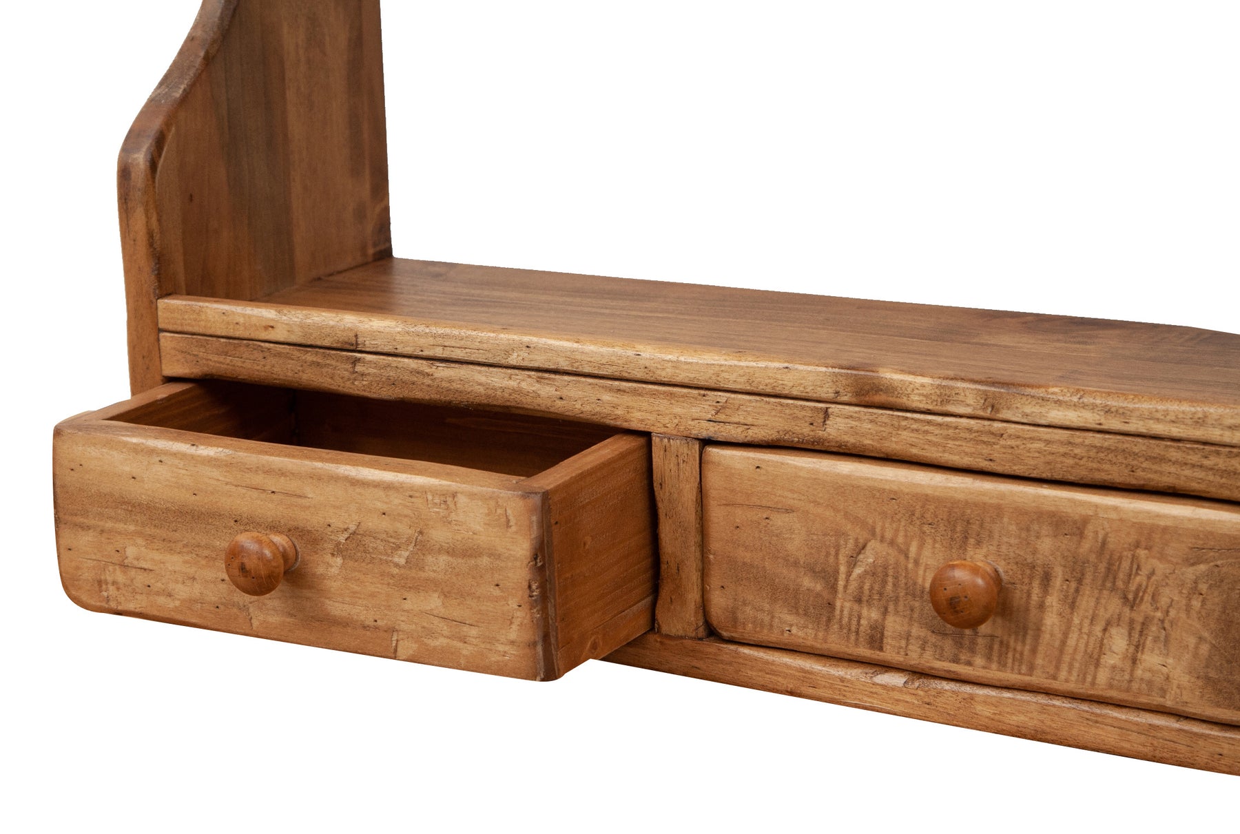 Versatile ed originale mensola etagere a muro L53xPR20xH68 cm con 1 ripiano e due cassetti realizzata in legno massello di tiglio. Interamente intagliata a mano, arreda con eleganza qualsiasi ambiente. Made in Italy.