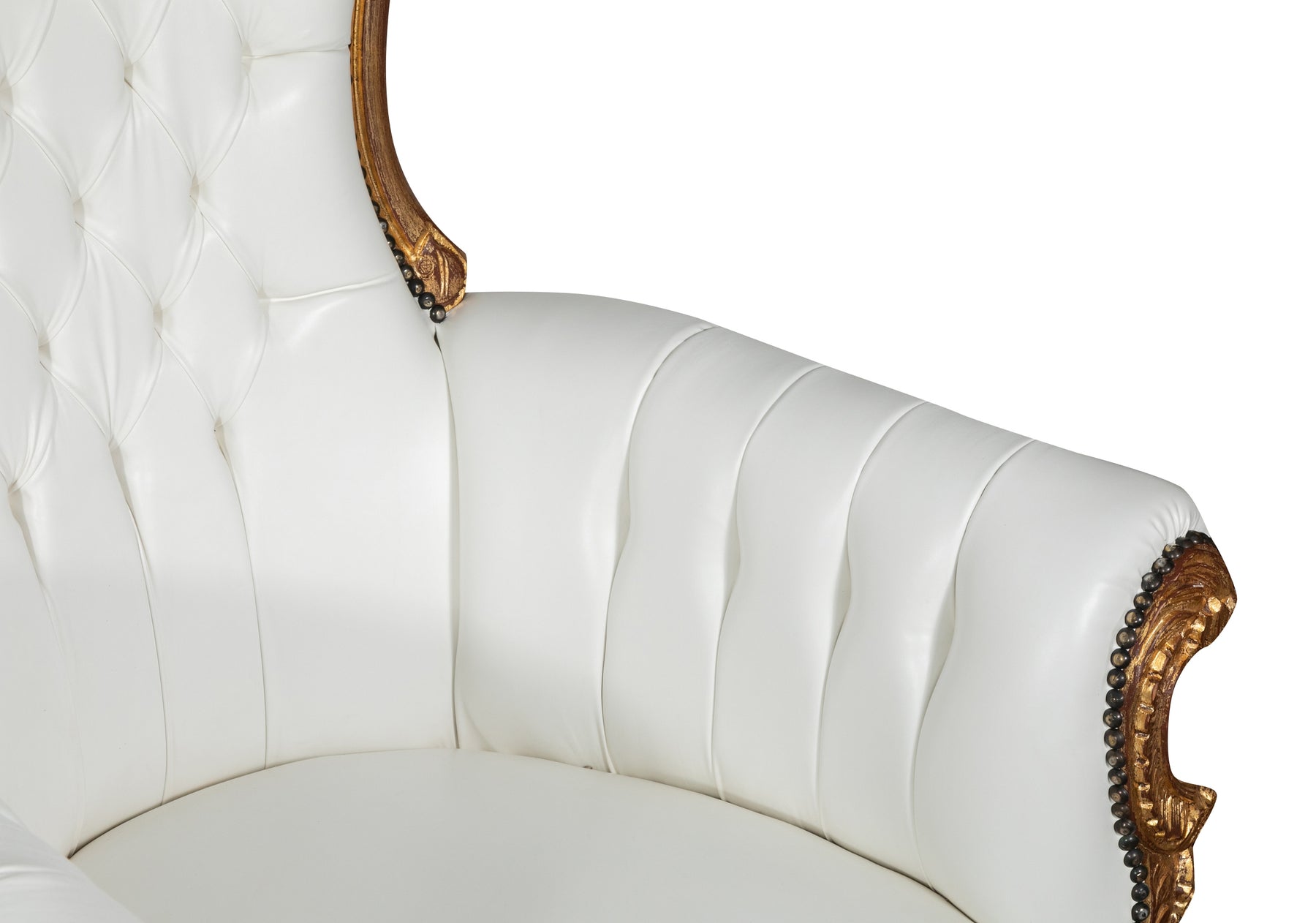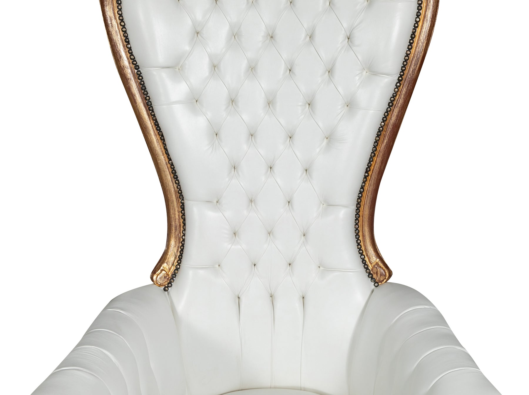 Opulenta, ricca, fastosa, decisamente intrigante, è la poltrona a trono stile francese Luigi XVI, in legno massello di faggio, intagliata e finita a mano con patina in foglia oro anticato di dimensioni larghezza 90 cm, profondità 95 cm, altezza 185 cm. Seduta e schienale imbottiti artigianalmente.