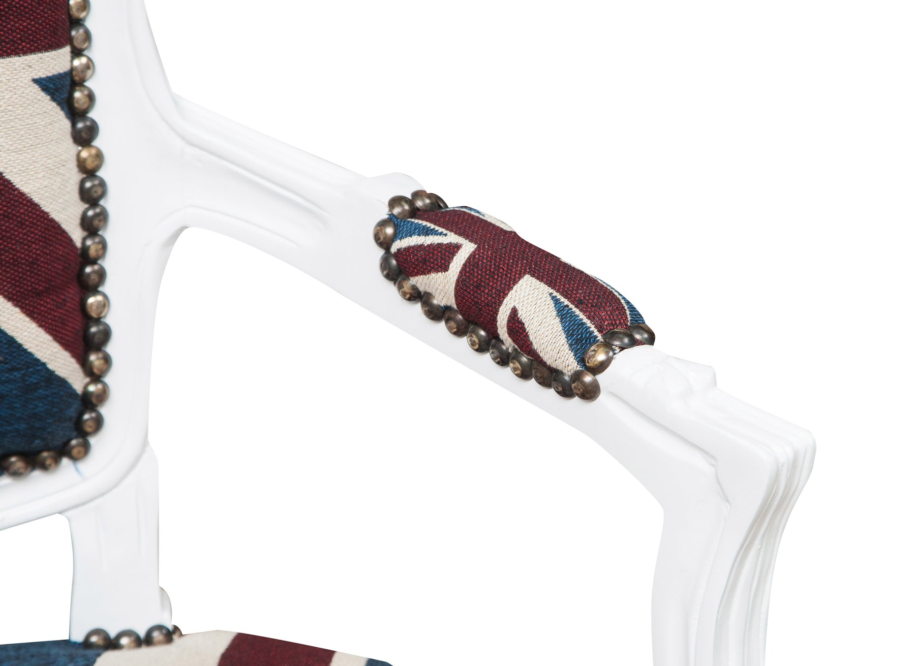 Poltrona stile francese Luigi XVI, in legno massello di faggio, intagliata a mano di dimensioni larghezza 63 cm, profondità 65 cm, altezza 100 cm. Finitura bianco laccato lucido. Seduta e schienale imbottiti artigianalmente.
