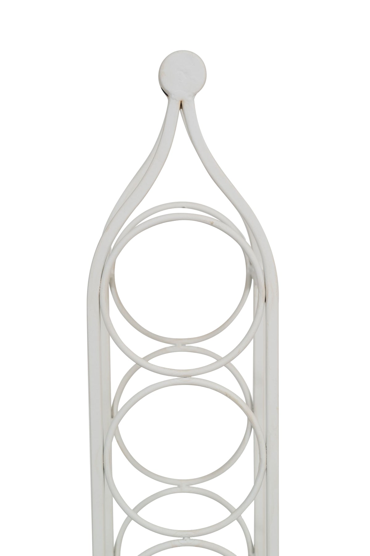 Cantinetta portabottiglie di dimensioni larghezza 13 cm, profondità 14 cm, altezza 58 cm realizzata in ferro battuto pieno. Con una capienza di 4 bottiglie, la cantinetta rappresenta un funzionale e pratico complemento d'arredo per ogni ambiente.
