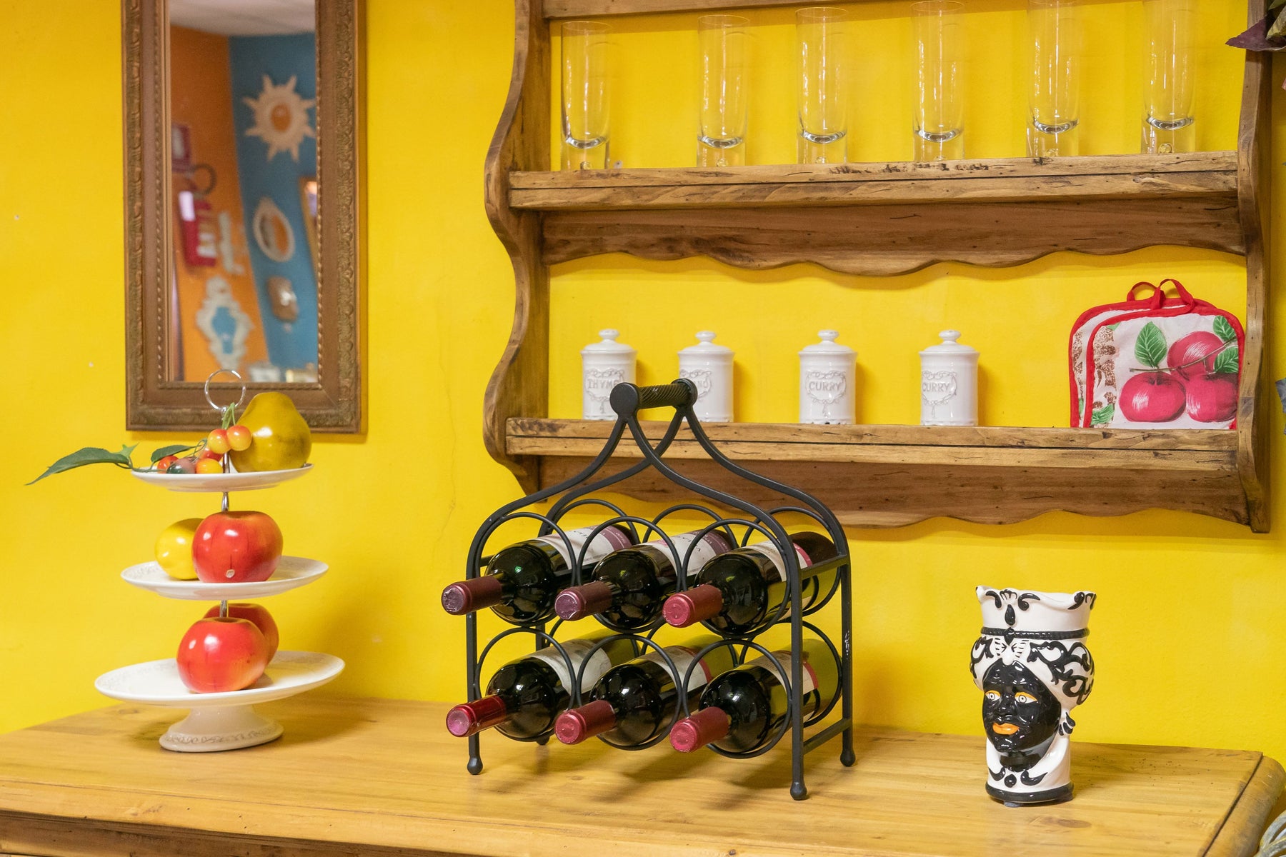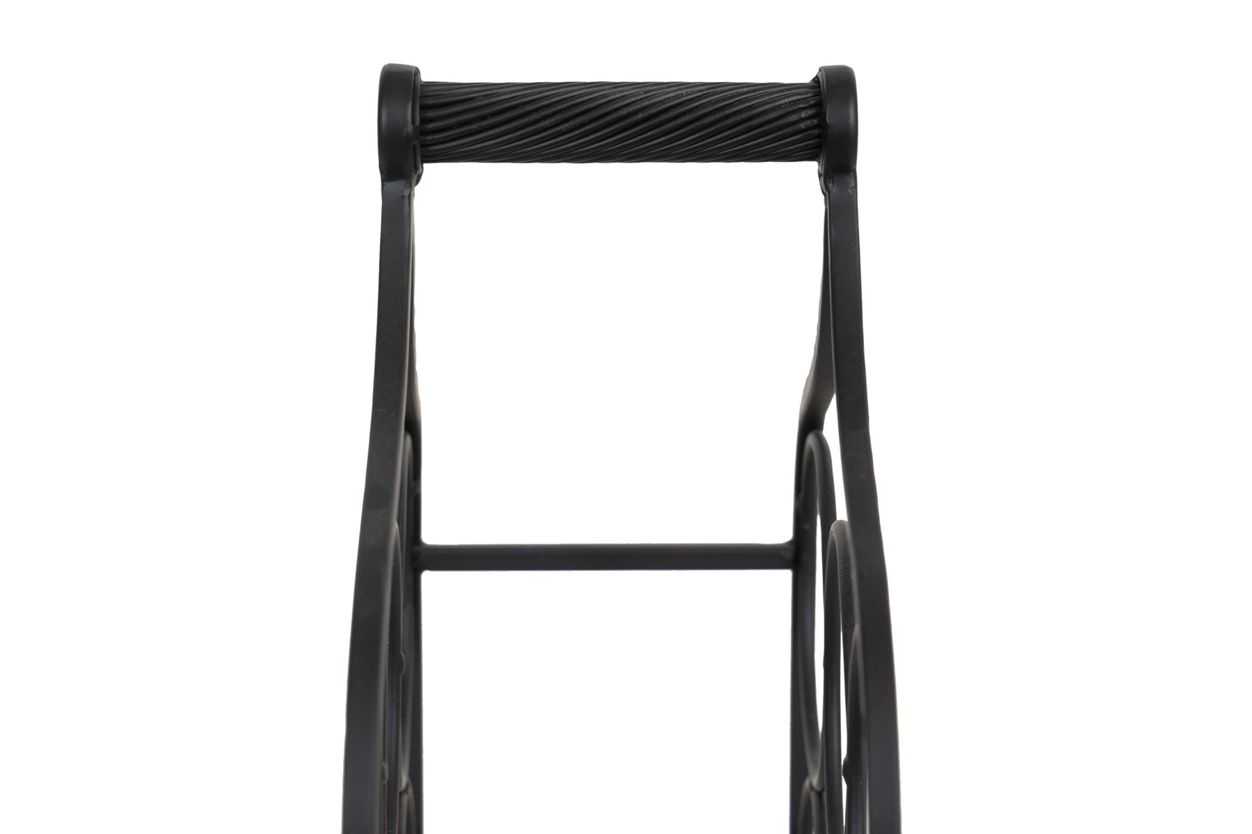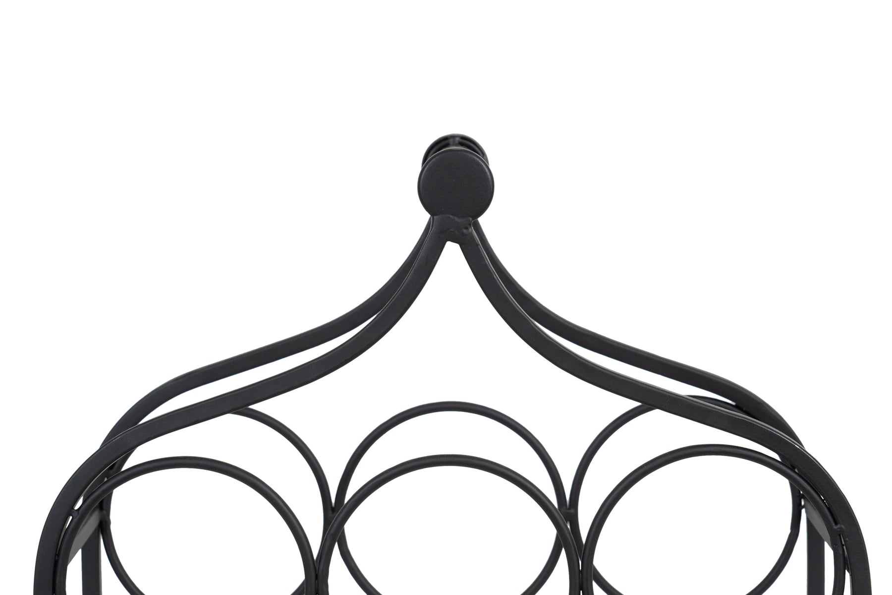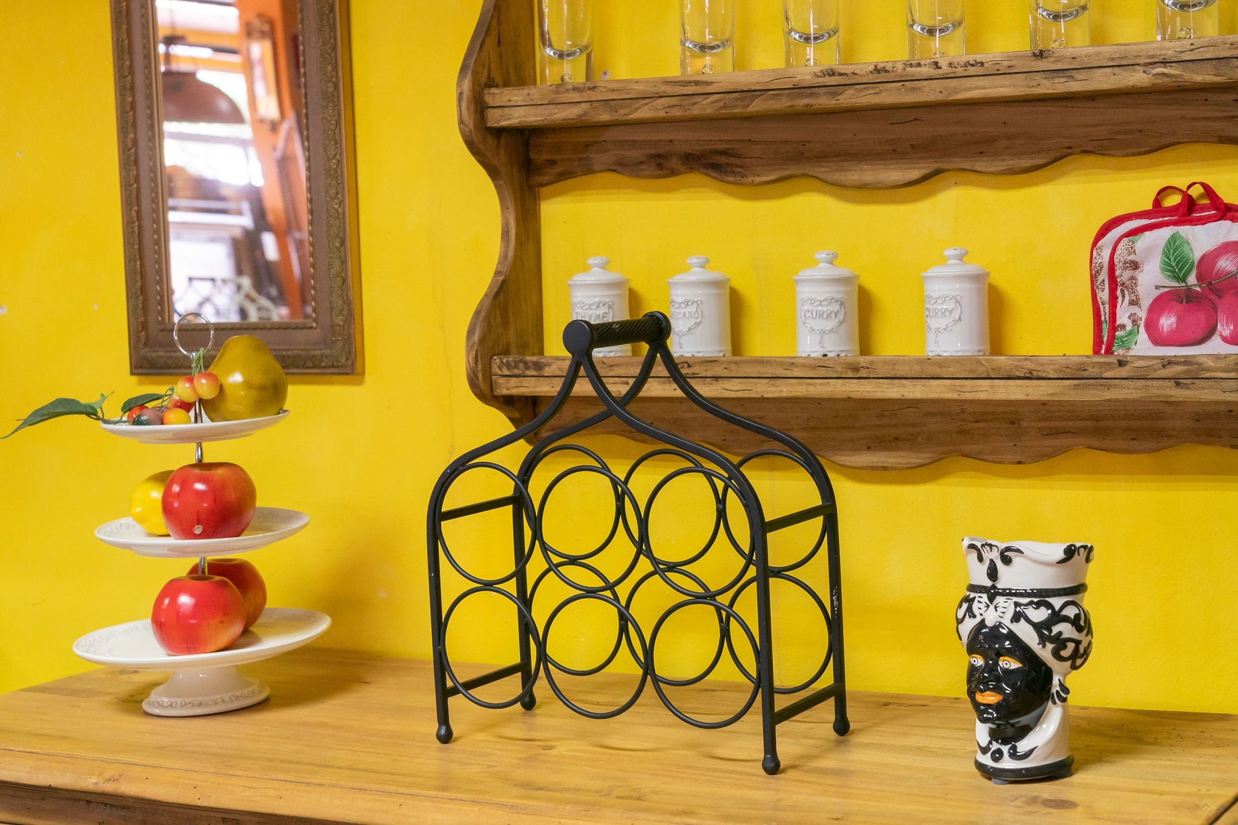 Cantinetta portabottiglie di dimensioni larghezza 35 cm, profondità 14 cm, altezza 37 cm realizzata in ferro battuto pieno. Con una capienza di 6 bottiglie, la cantinetta rappresenta un funzionale e pratico complemento d'arredo per ogni ambiente.