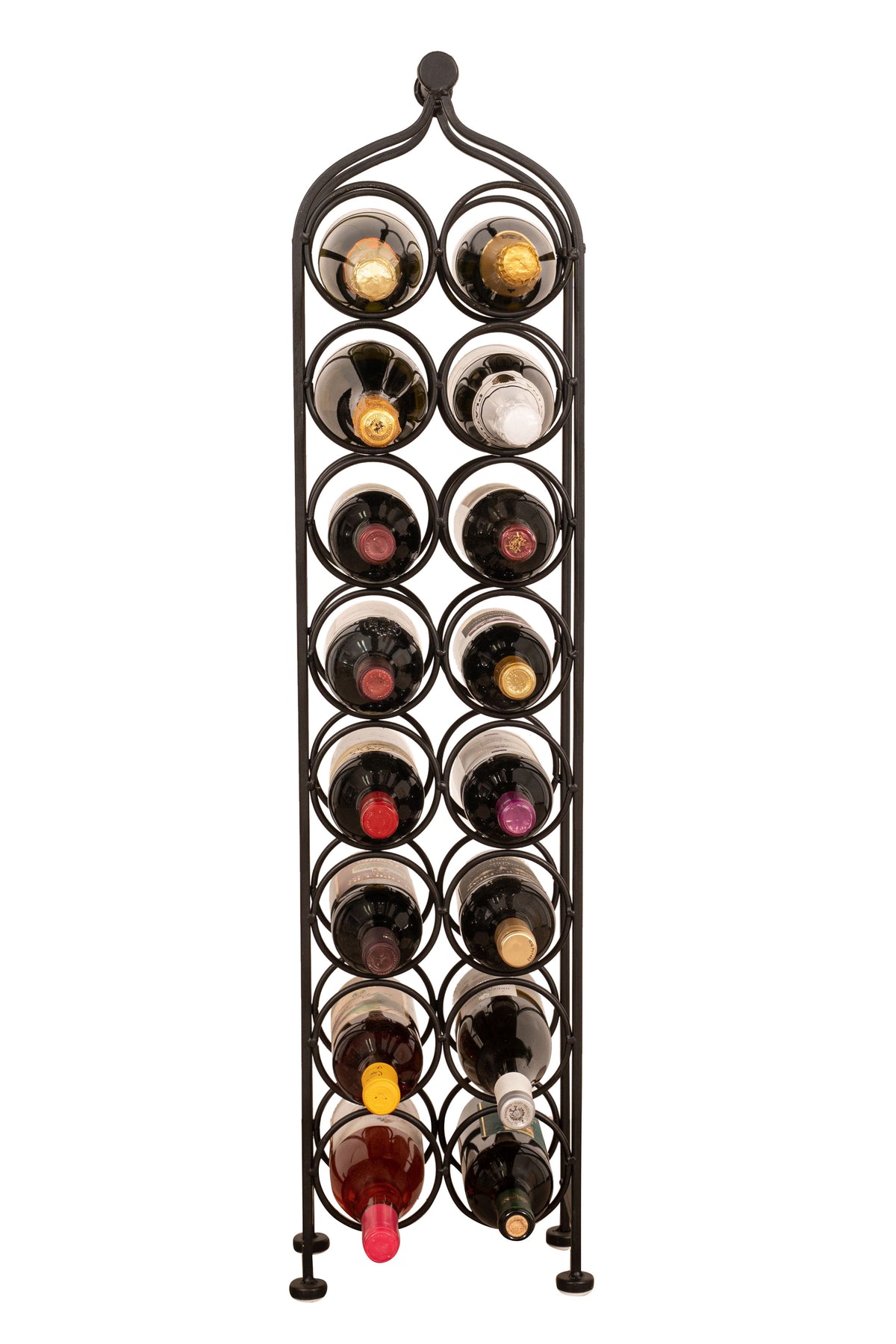 Molto stabile e robusta cantinetta portabottiglie di dimensioni 25 cm di larghezza, 15 cm di profondità, 105 cm di altezza realizzata in ferro battuto pieno. Con una capienza di 16 bottiglie, rappresenta un funzionale e pratico complemento d'arredo per ogni ambiente.