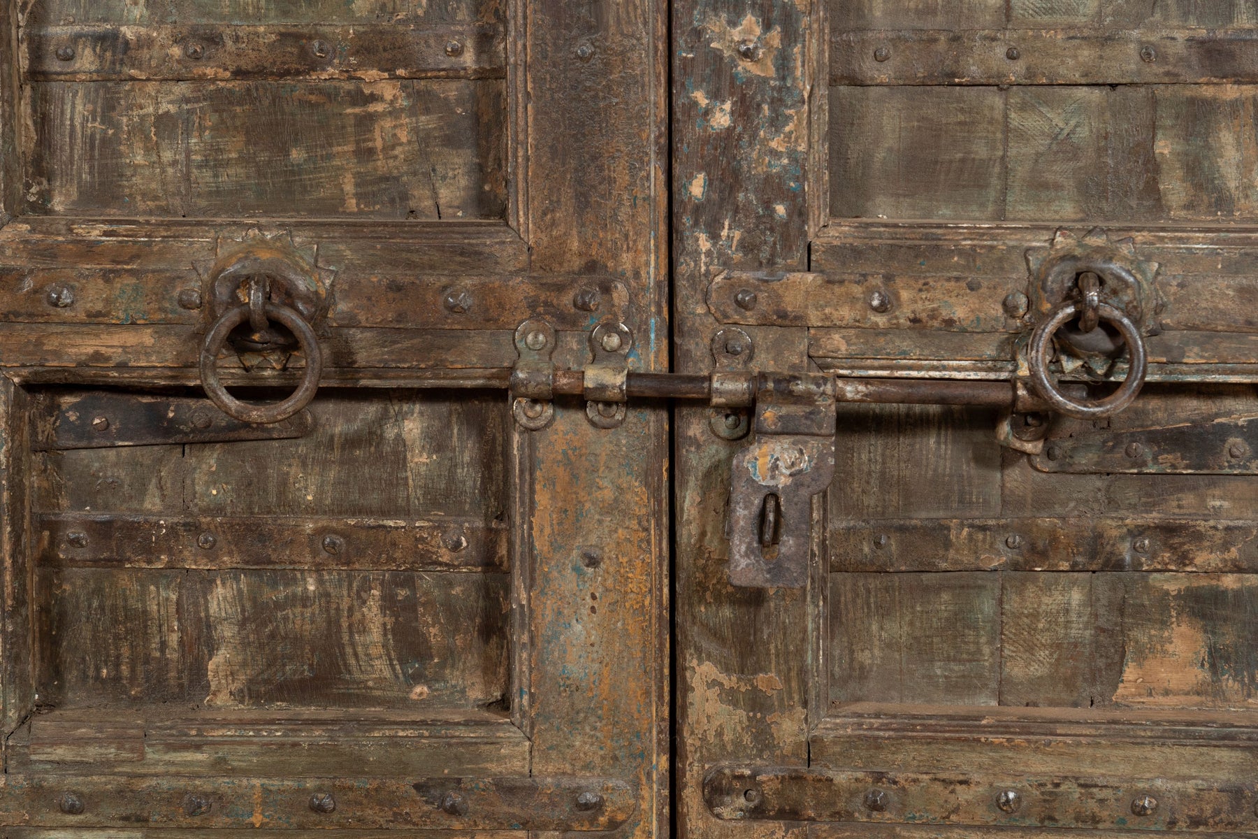 Biscottini Porta portone in legno massello e ferro da interno o da esterno vecchia e antica medievale