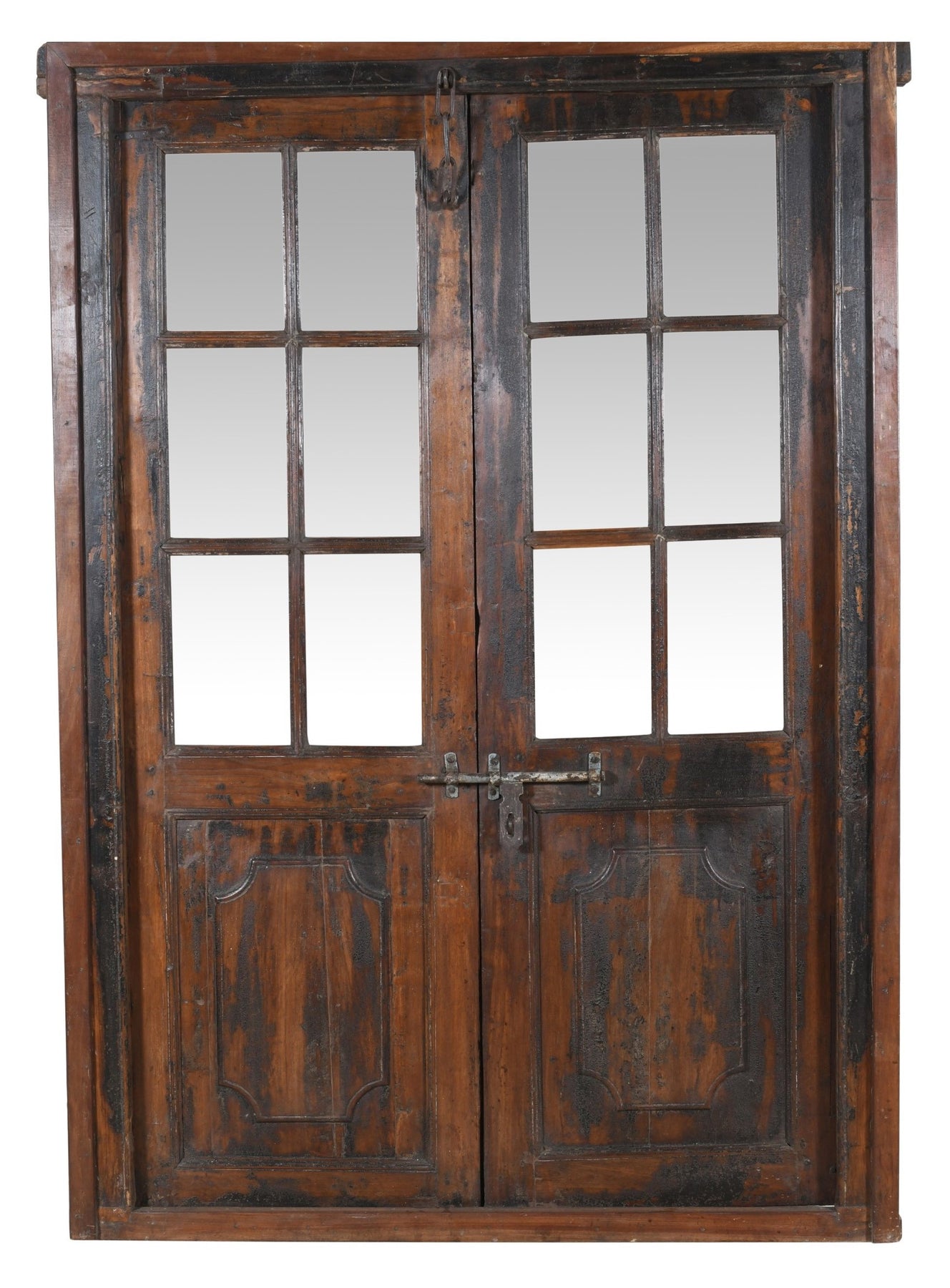 Biscottini Porta portone in legno massello e ferro da interno o da esterno vecchia e antica medievale con telaio e vetro
