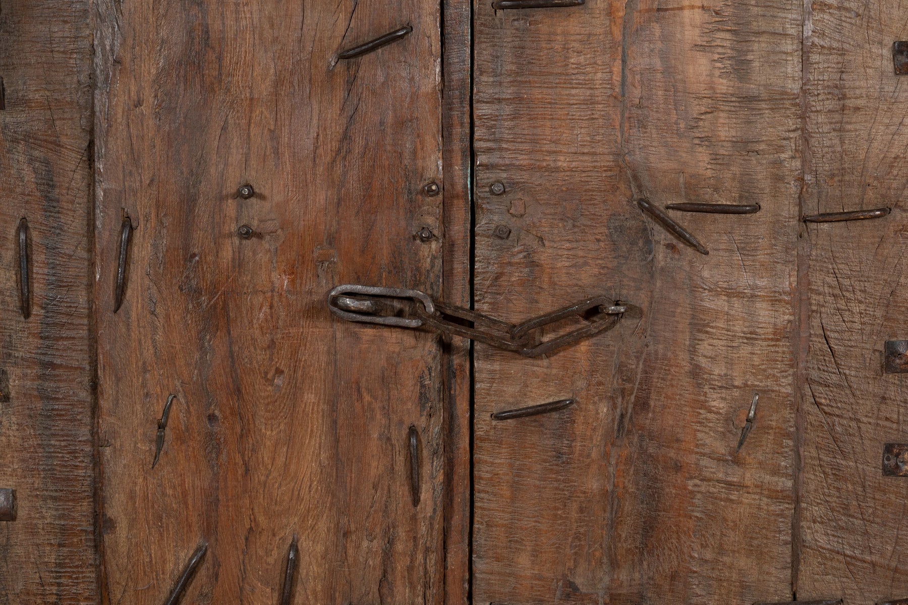 Portone/porta antica in legno massello di teak di dimensioni lunghezza 138 cm, profondità 9 cm, altezza 228 cm. Questo portone deriva da demolizioni e recuperi di antichi ed importanti fabbricati. Finemente restaurato e trattato anche per uso esterna, ogni porta è un pezzo di vero ed unico antiquariato. Tutte le misure si riferiscono all'ingombro massimo dell'articolo.