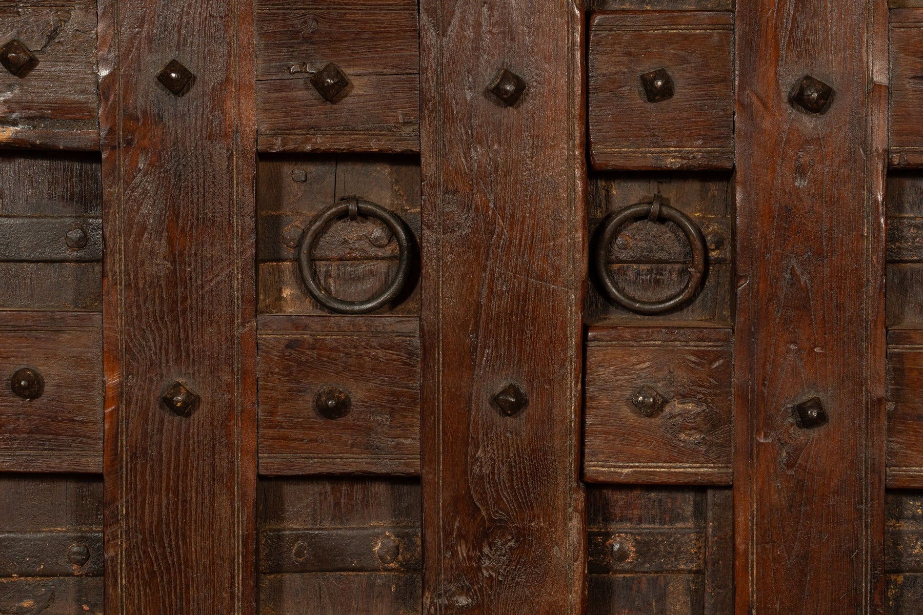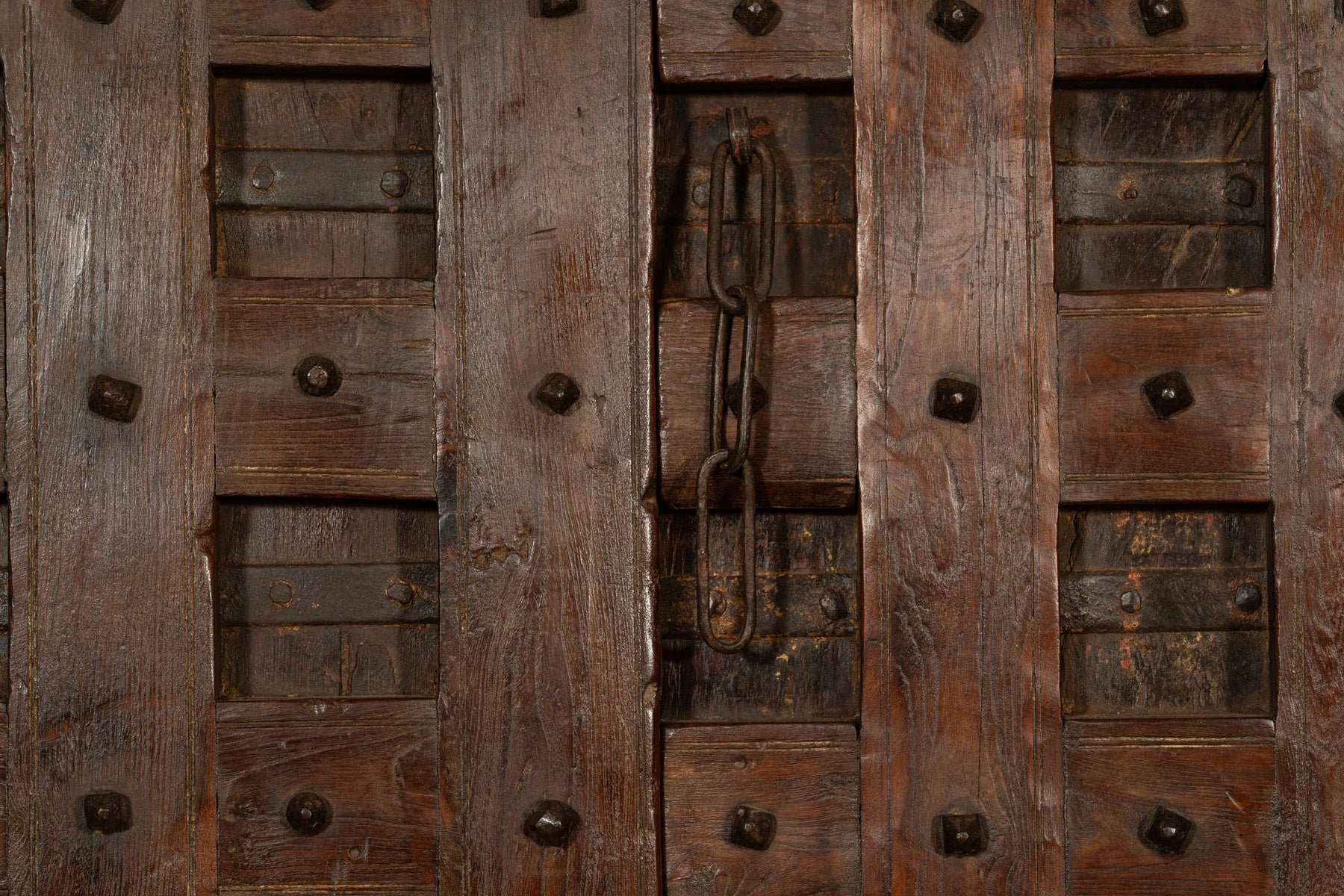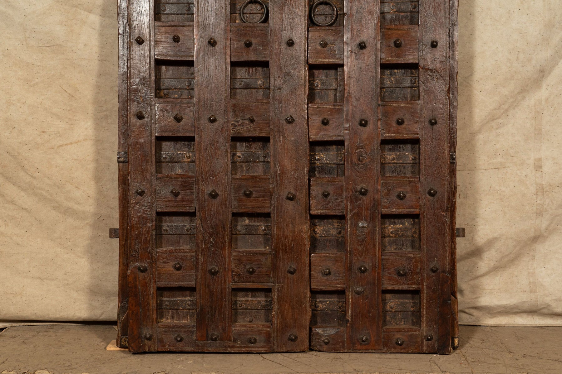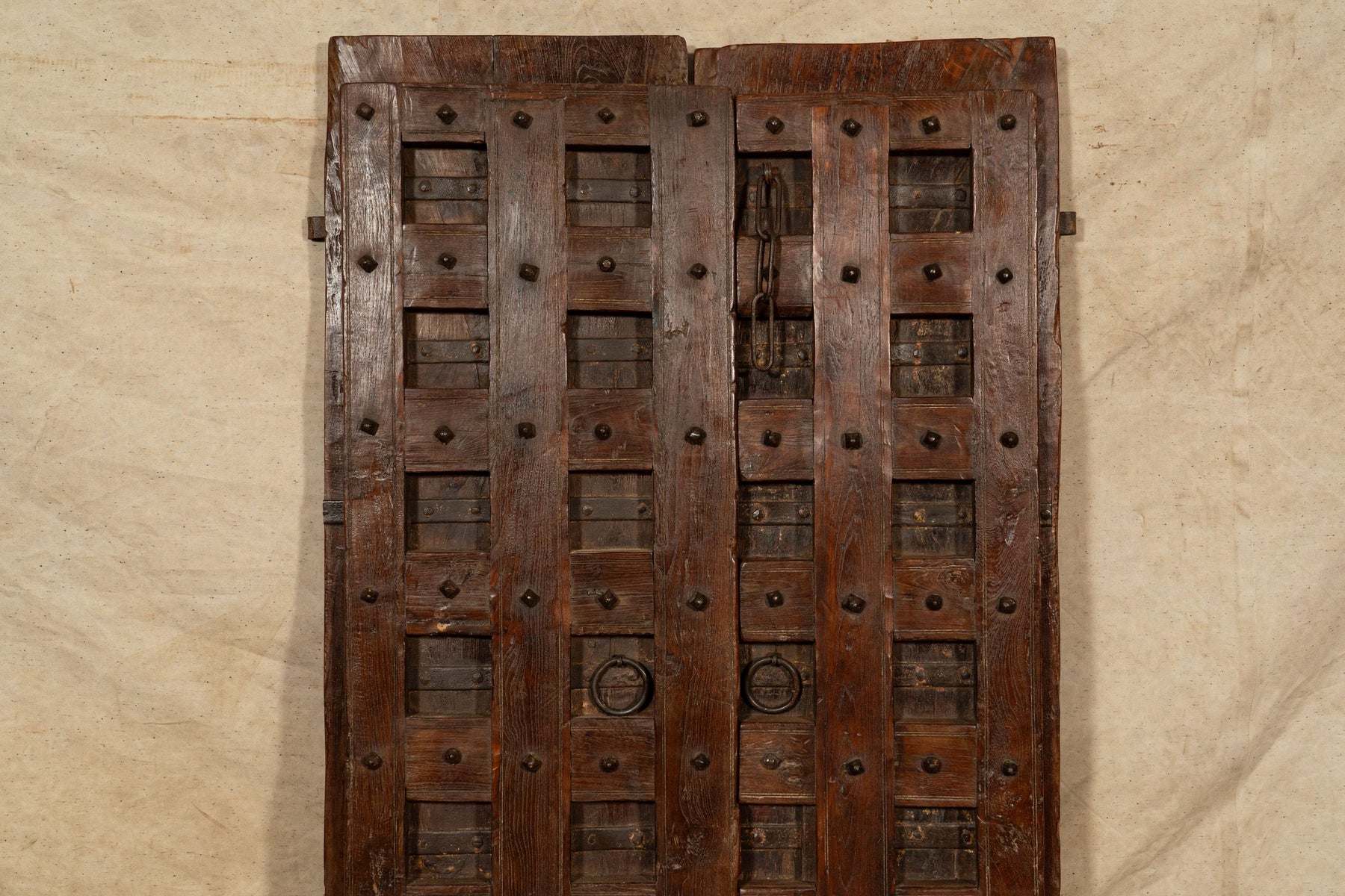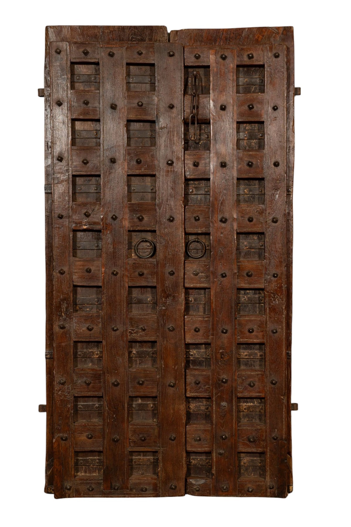 Portone/porta antica in legno massello di teak di dimensioni lunghezza 118 cm, profondità  11 cm, altezza 194 cm. Questo portone deriva da demolizioni e recuperi di antichi ed importanti fabbricati. Finemente restaurato e trattato anche per uso esterna, ogni porta è un pezzo di vero ed unico antiquariato. Tutte le misure si riferiscono all'ingombro massimo dell'articolo.