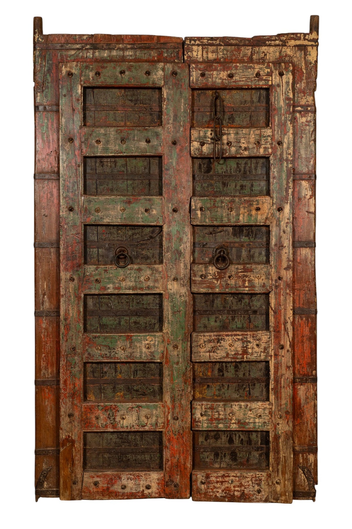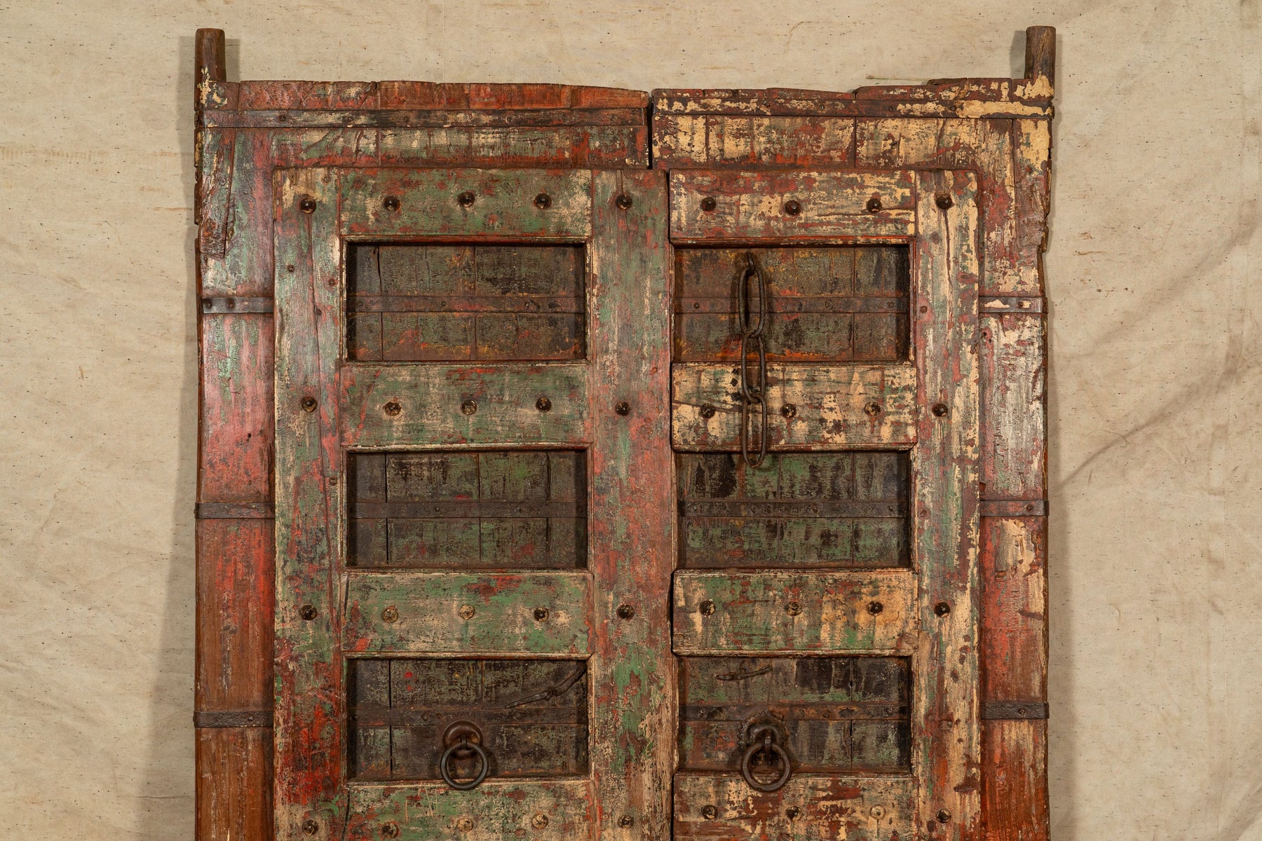 Portone/porta antica in legno massello di teak di dimensioni lunghezza 134 cm, profondità  11 cm, altezza 210 cm. Questo portone deriva da demolizioni e recuperi di antichi ed importanti fabbricati. Finemente restaurato e trattato anche per uso esterna, ogni porta è un pezzo di vero ed unico antiquariato. Tutte le misure si riferiscono all'ingombro massimo dell'articolo.
