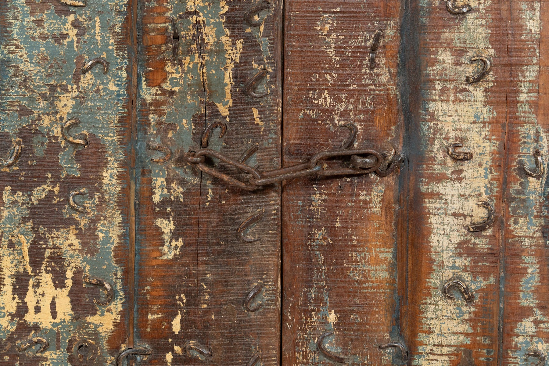 Biscottini Porta portone in legno massello e ferro da interno o da esterno vecchia e antica medievale scorrevole