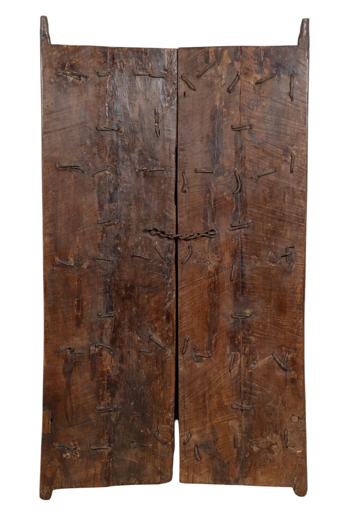 Portone/porta antica in legno massello di teak di dimensioni lunghezza 110 cm, profondità 9 cm, altezza 199 cm. Questo portone deriva da demolizioni e recuperi di antichi ed importanti fabbricati. Finemente restaurato e trattato anche per uso esterna, ogni porta è un pezzo di vero ed unico antiquariato. Tutte le misure si riferiscono all'ingombro massimo dell'articolo.