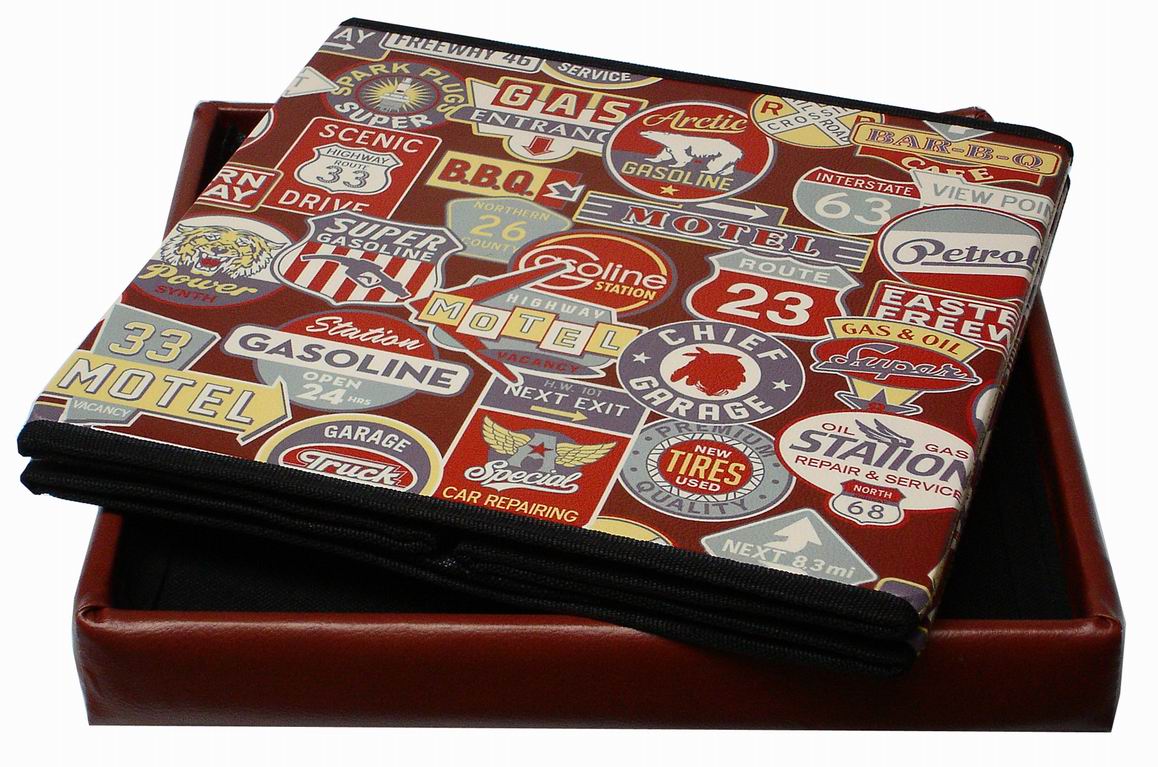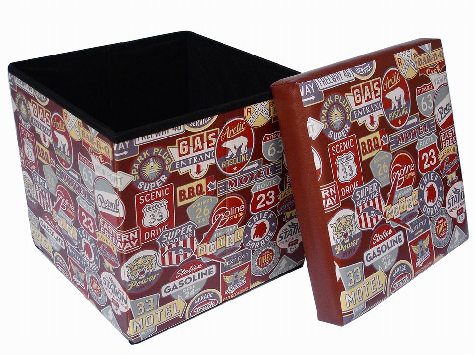 Biscottini Pouf contenitore richiudibile in ecopelle targhe Praticissimo 32x32x32