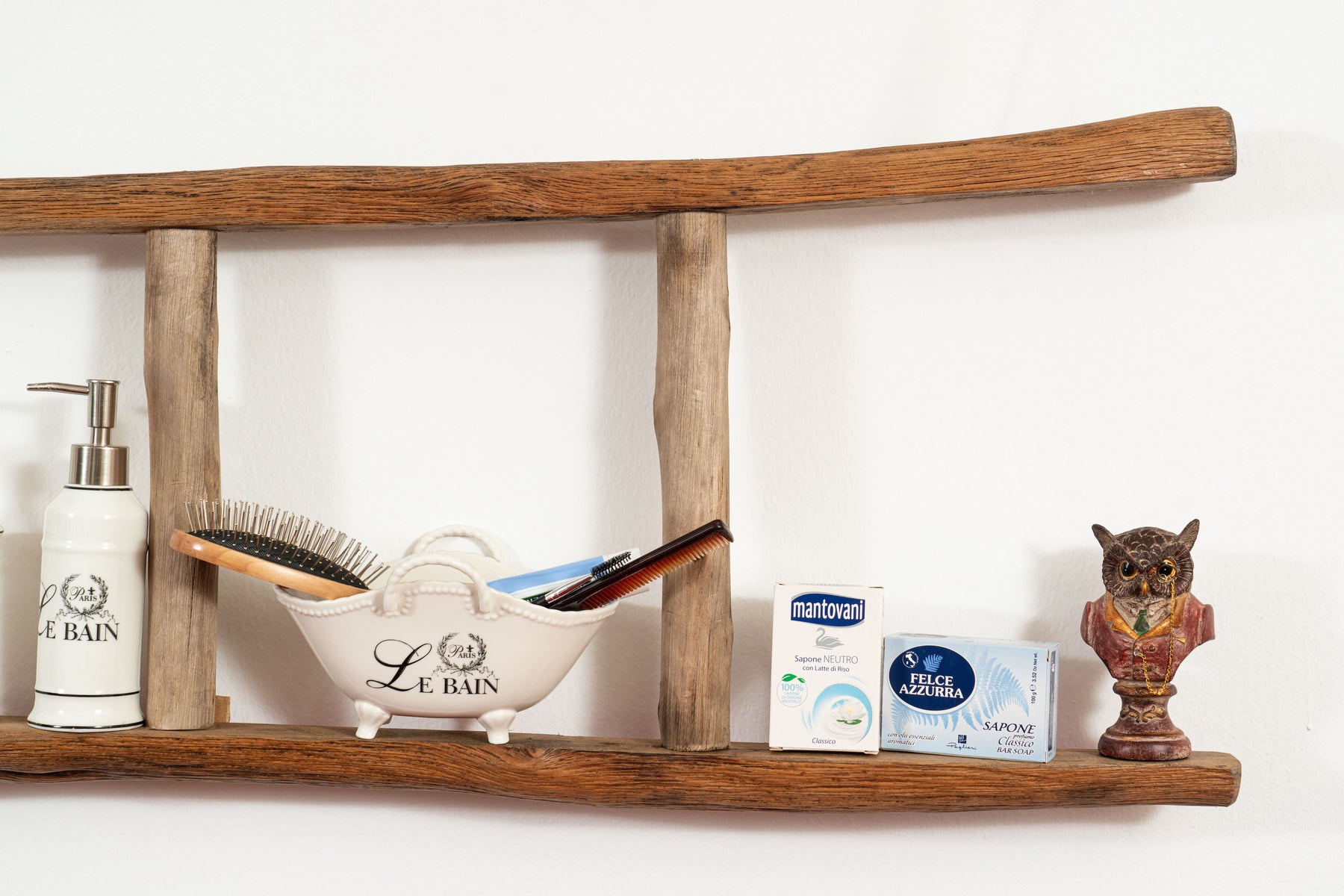 Scala in legno di dimensioni 40x8x150 cm. Riproduce fedelmente sia per estetica sia per costruzione le vecchie scale, con i laterali ricavati da un unico tronco di albero tagliato a metà. Un complemento di arredo molto versatile, oltre che a un funzionale attrezzo per la vita quotidiana. Essendo realizzate artigianalmente, ciascuna scala può essere leggermente differente l’una dall’altra per quanto riguarda la finitura.