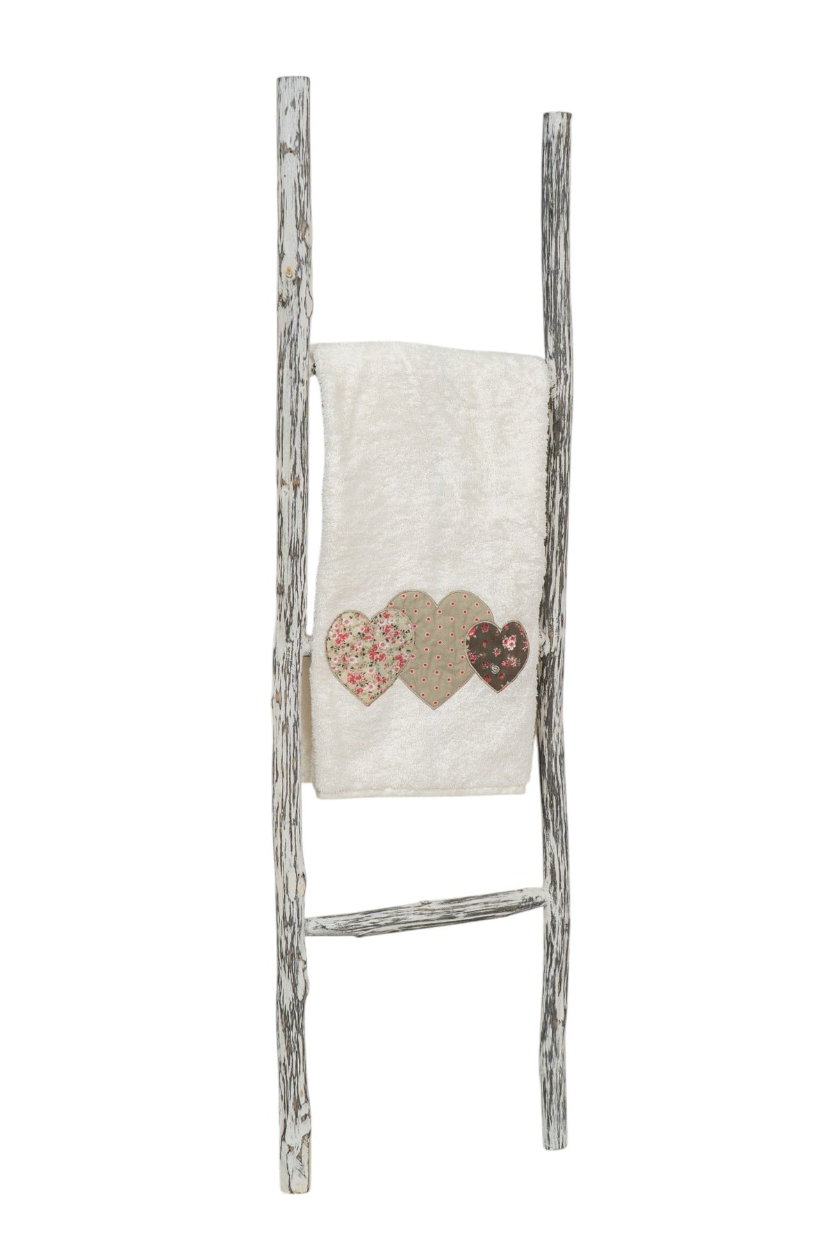 Scala portasciugamani da bagno in legno di dimensioni lunghezza 33 cm, profondità 4 cm, altezza 110 cm, che riproduce fedelmente sia per estetica sia per costruzione le vecchie scale. Un complemento di arredo molto versatile, oltre che a un funzionale attrezzo per la vita quotidiana. Essendo realizzate artigianalmente, ciascuna scala può essere leggermente differente l’una dall’altra per quanto riguarda la finitura.