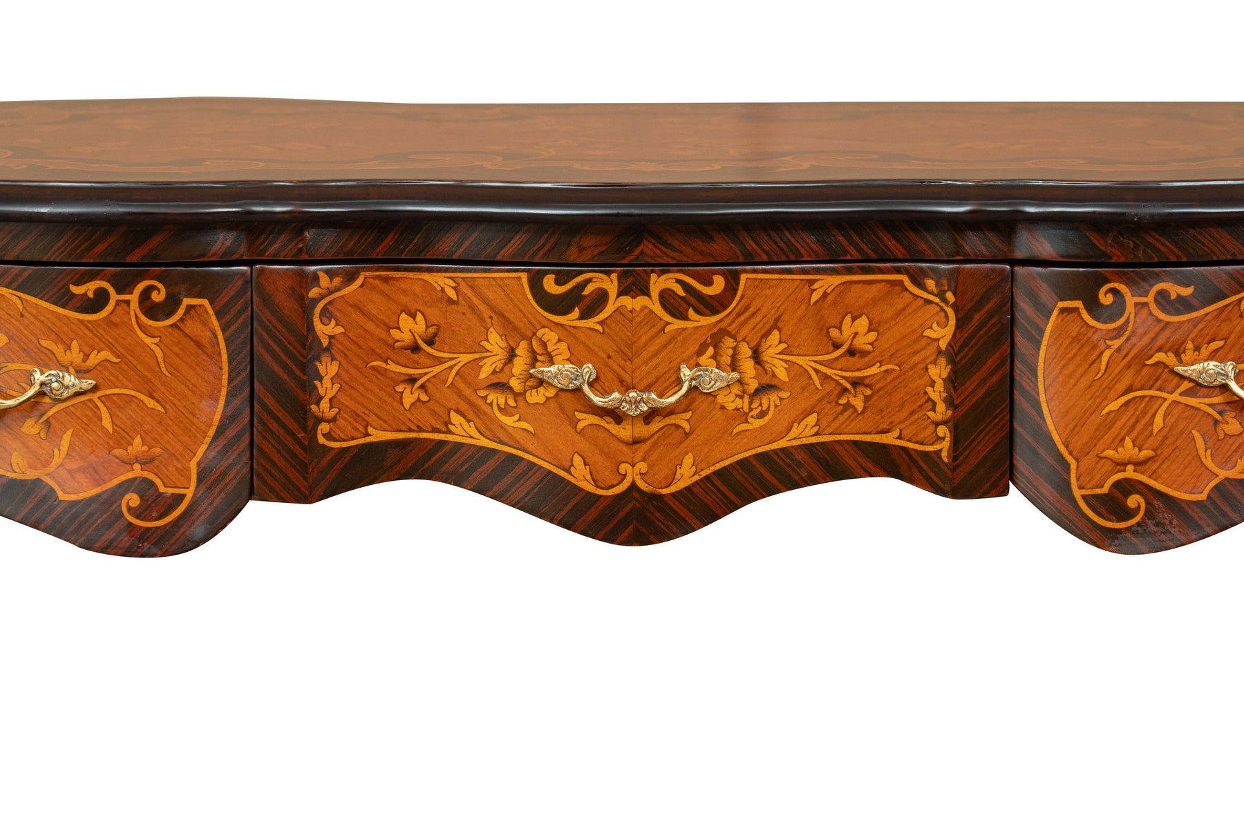 Scrittoio di altissimo valore artigianale di dimensioni lunghezza 122 cm, profondità 60 cm, altezza 81 cm, vera espressione di maestria raggiungibile solo da pochi esperti maestri di bottega. Un vero capolavoro la cui struttura è arricchita da precisi intarsi finemente assemblati per ottenere piacevolissime geometrie intramontabili. Un oggetto funzionale che rappresenta il mobile capace di sfidare il tempo mantenendo inalterato il suo fascino.