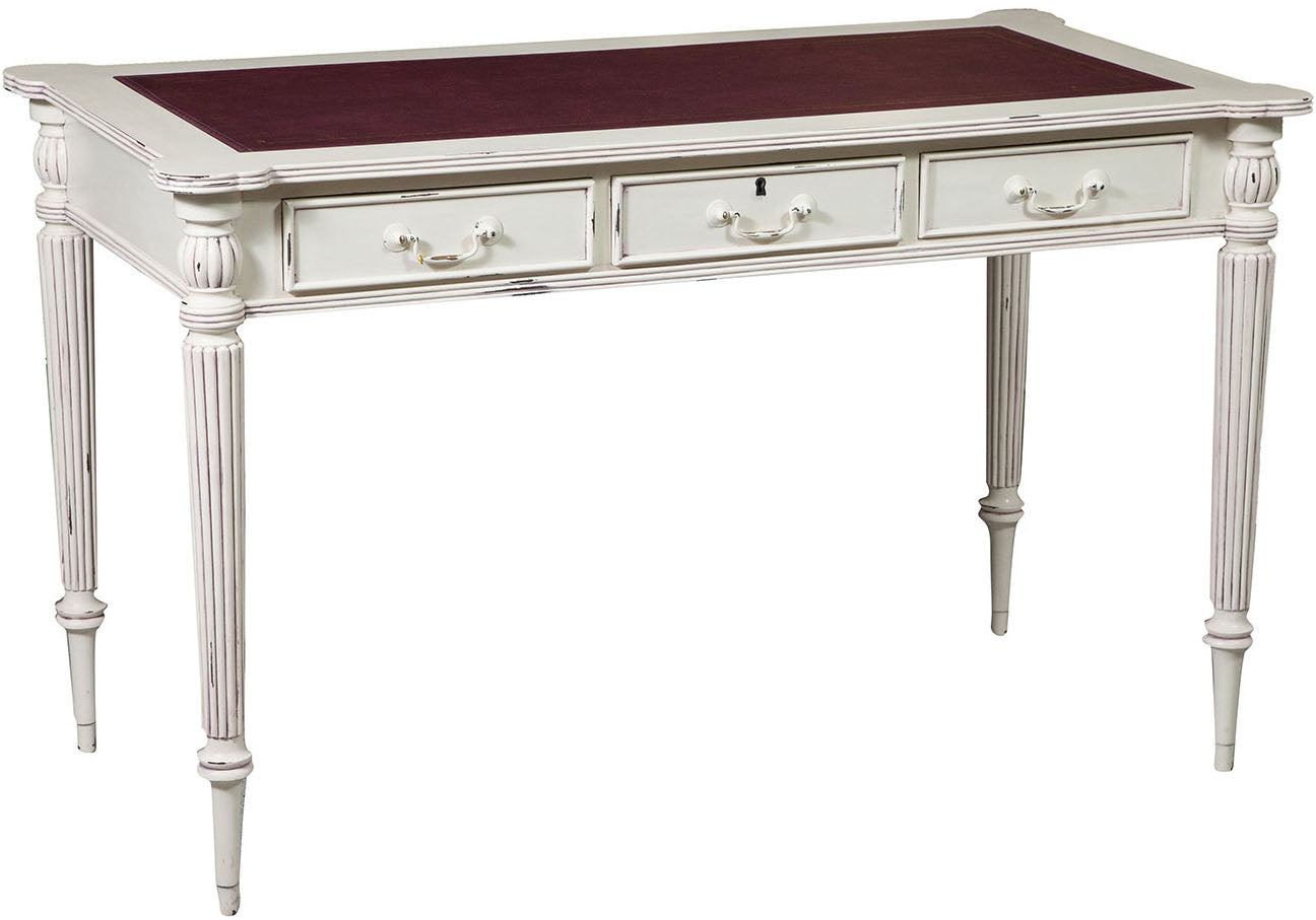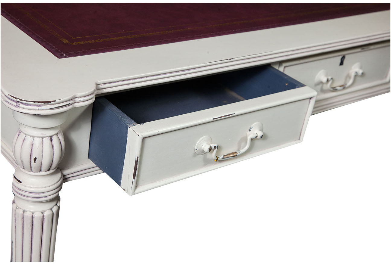 Biscottini Scrivania scrittoio in legno massello di mogano finitura bianca anticata 126x65x75 cm