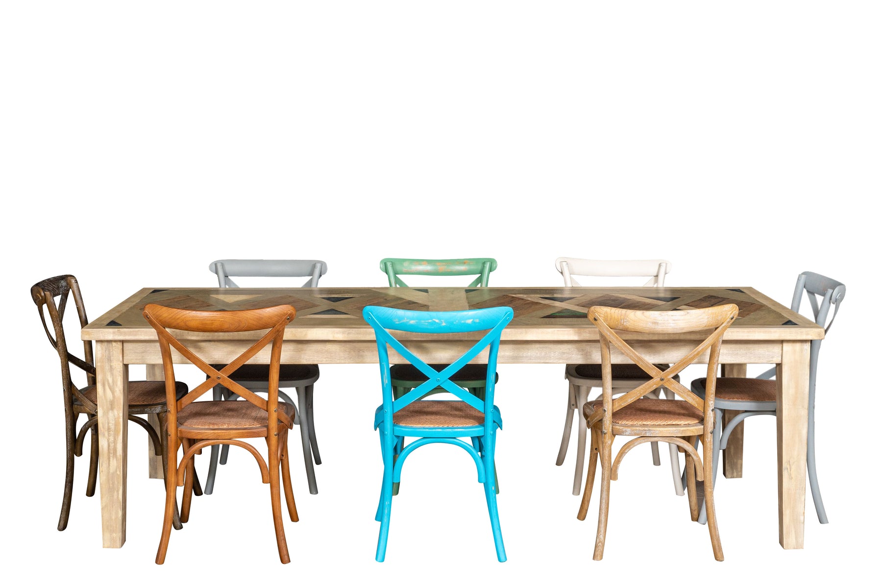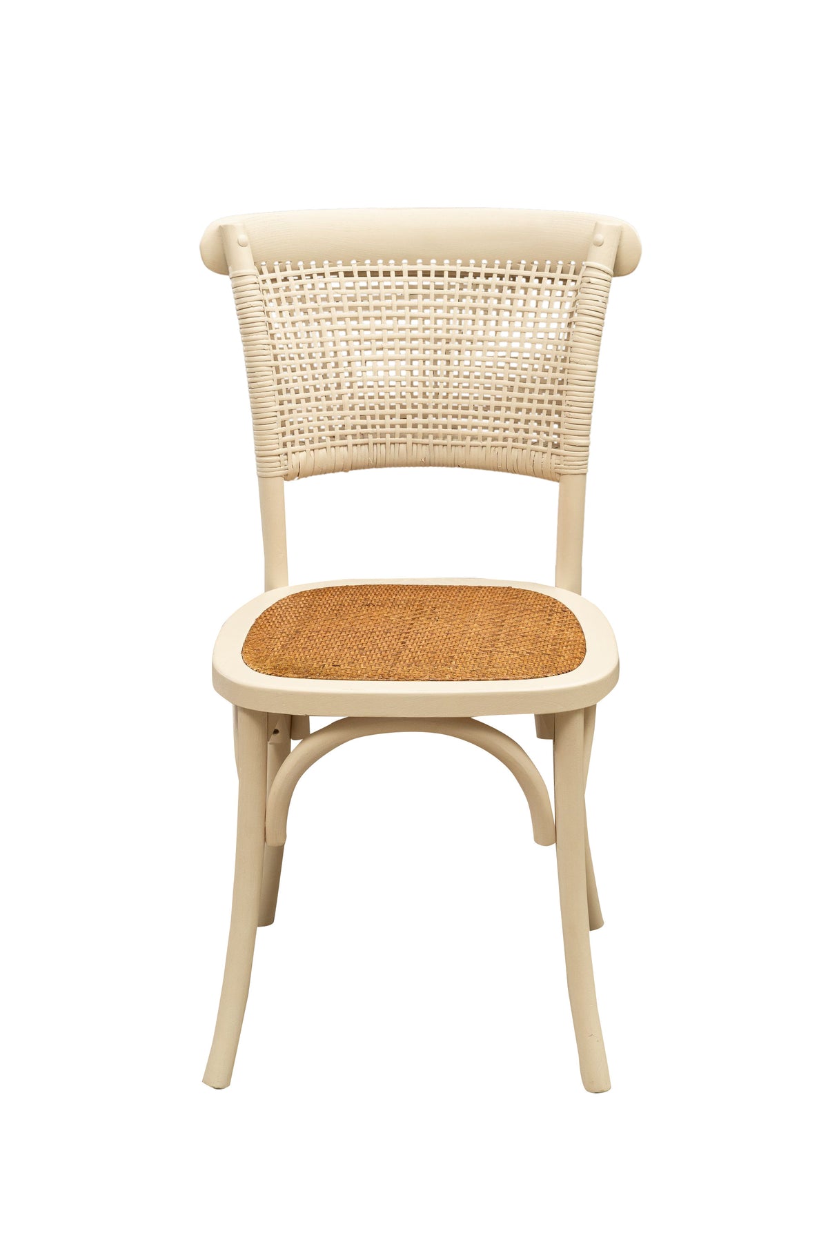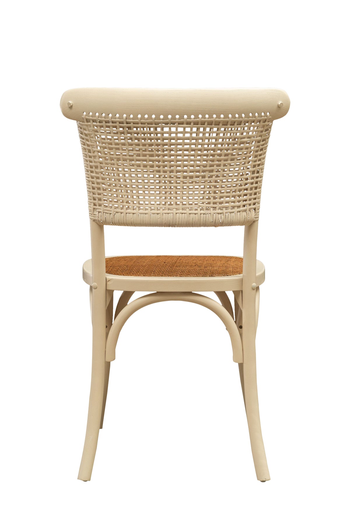 Sedia larghezza 45 cm, profondità 42 cm, altezza 87 cm in stile Thonet realizzata in massello di frassino con schienale incrociato e seduta in fibra di rattan intrecciata. Grazie al loro design da bistrot è ideale per arredare in stile vintage qualsiasi ambiente o locale, senza rinunciare alla comodità.