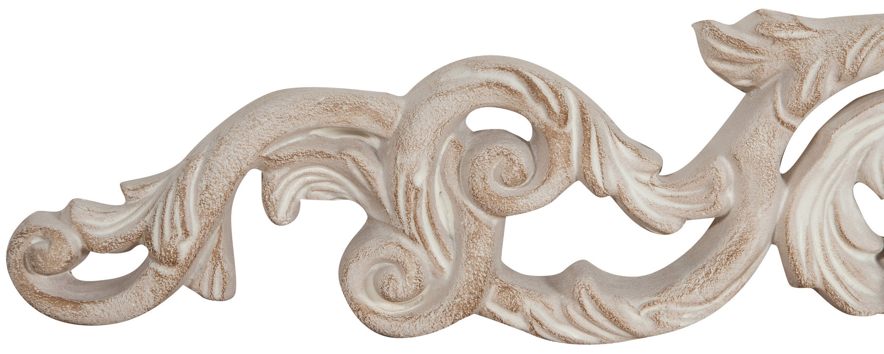 Fregio sopraporta L80XPR2,5xH15 cm realizzato in legno finitura bianco anticato. Accuratamente lavorato e rifinito da vecchi artigiani Fiorentini. Facilmente applicabile per arricchire e decorare pareti, porte, specchiere, quadri… Già predisposto con ganci per il fissaggio al muro. Articolo interamente realizzato in Italia.