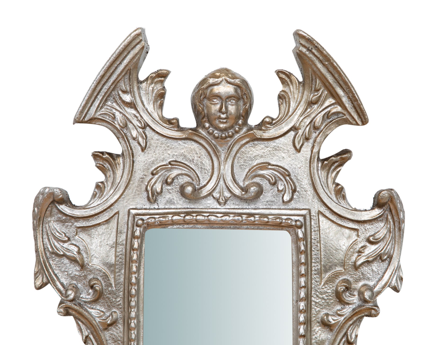 Specchiera da parete L34xPR4xH64 cm realizzata in legno finitura in foglia argento anticato. Accuratamente lavorata e rifinita da vecchi artigiani Fiorentini. Facilmente applicabile per arricchire e decorare qualsiasi ambiente. Già predisposta con ganci per il fissaggio al muro.