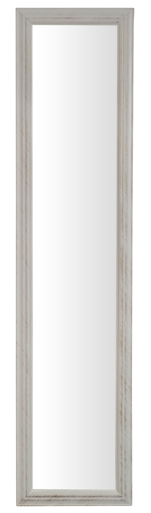 Specchiera a muro di dimensioni lunghezza 40 cm, profondità 4 cm, altezza 170 cm, realizzata con tecniche antiche: cornice totalmente in legno, ed i fregi e decori apllicati successivamente in gesso. Pratica ed estetica al tempo stesso, grazie alla cornice lavorata, impreziosisce ogni angolo della casa con stile romantico.