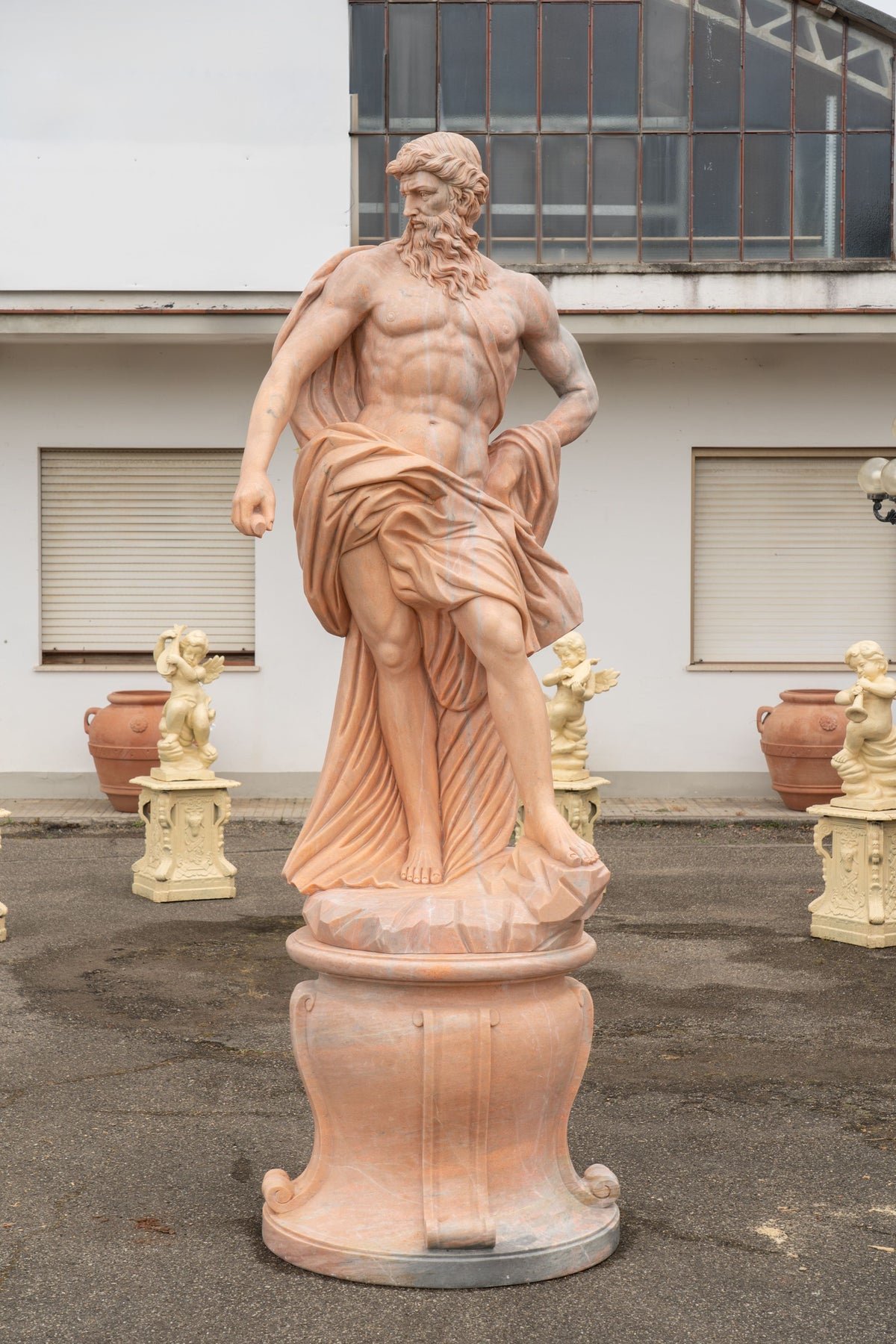 Statua con base realizzata in marmo di dimensioni L103xPR103xH275 cm. Raffigurante il Nettuno della Fontana di Trevi, è realizzato in un unico blocco di marmo.