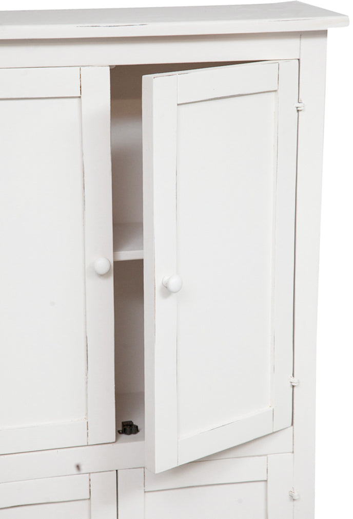Biscottini Stipetto Country in legno massello di tiglio struttura bianca anticata L68xPR25xH130 cm. Made in Italy