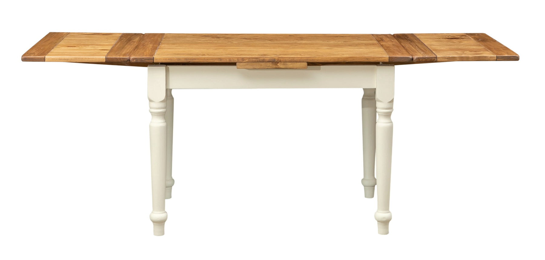 Tavolo rettangolare larghezza 120 cm, profondità 80 cm, altezza 80 cm in legno massello di tiglio allungabile fino a 165 o 210 cm grazie alle due pratiche allunghe da 45 cm ciascuna. Ideale per completare con un tocco di fascino Country ogni ambiente, è garantito in solidità e qualità dalla inconfondibile e scrupolosa lavorazione artigianale Made in Italy.