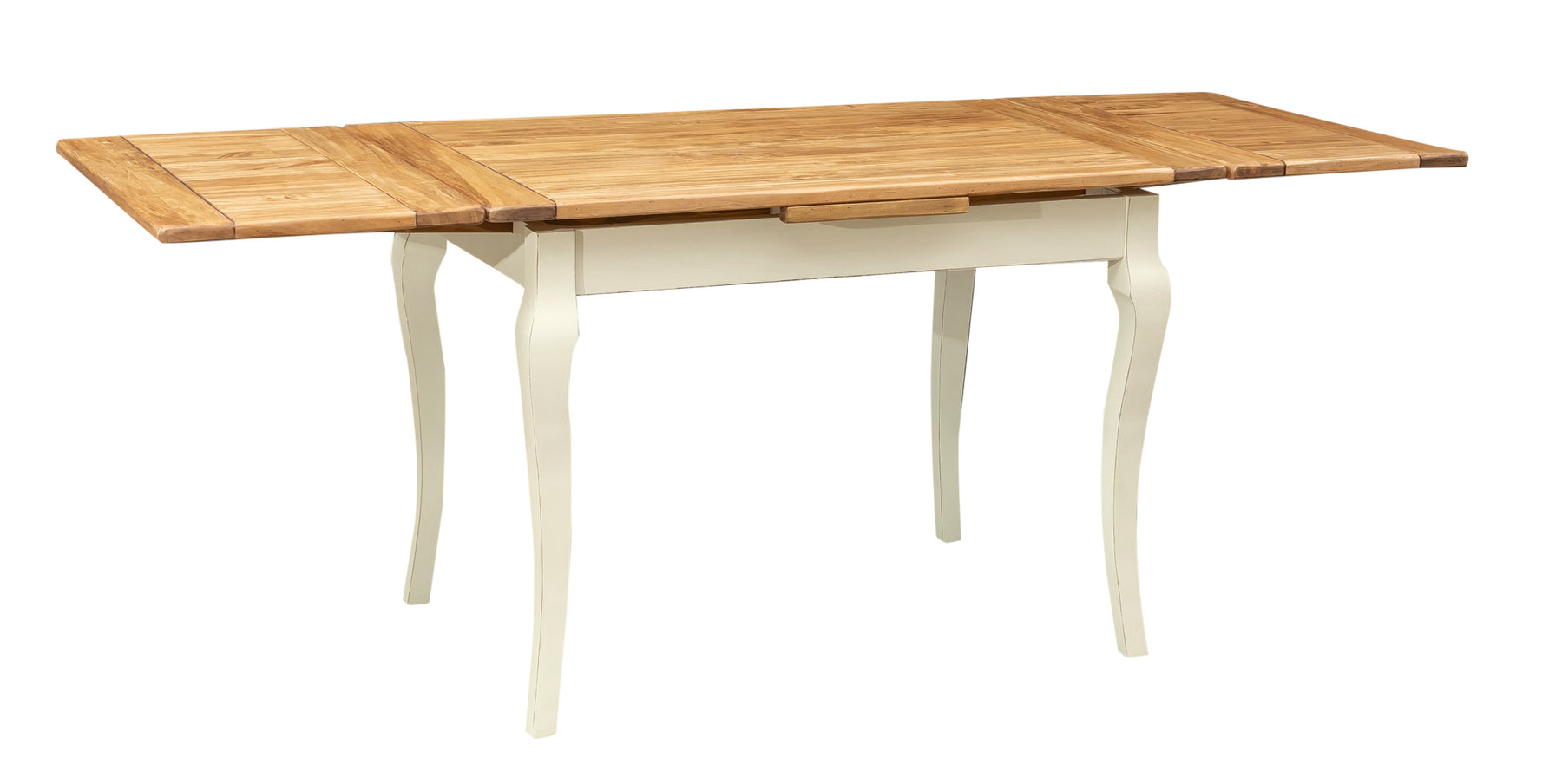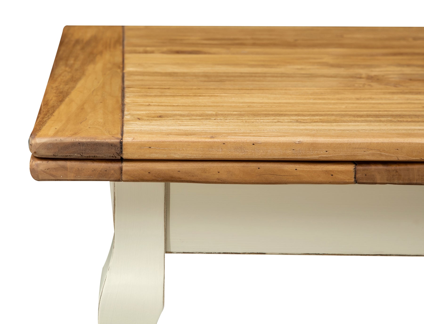 Biscottini Tavolo Country allungabile in legno massello di tiglio struttura bianca anticata piano naturale. Made in Italy