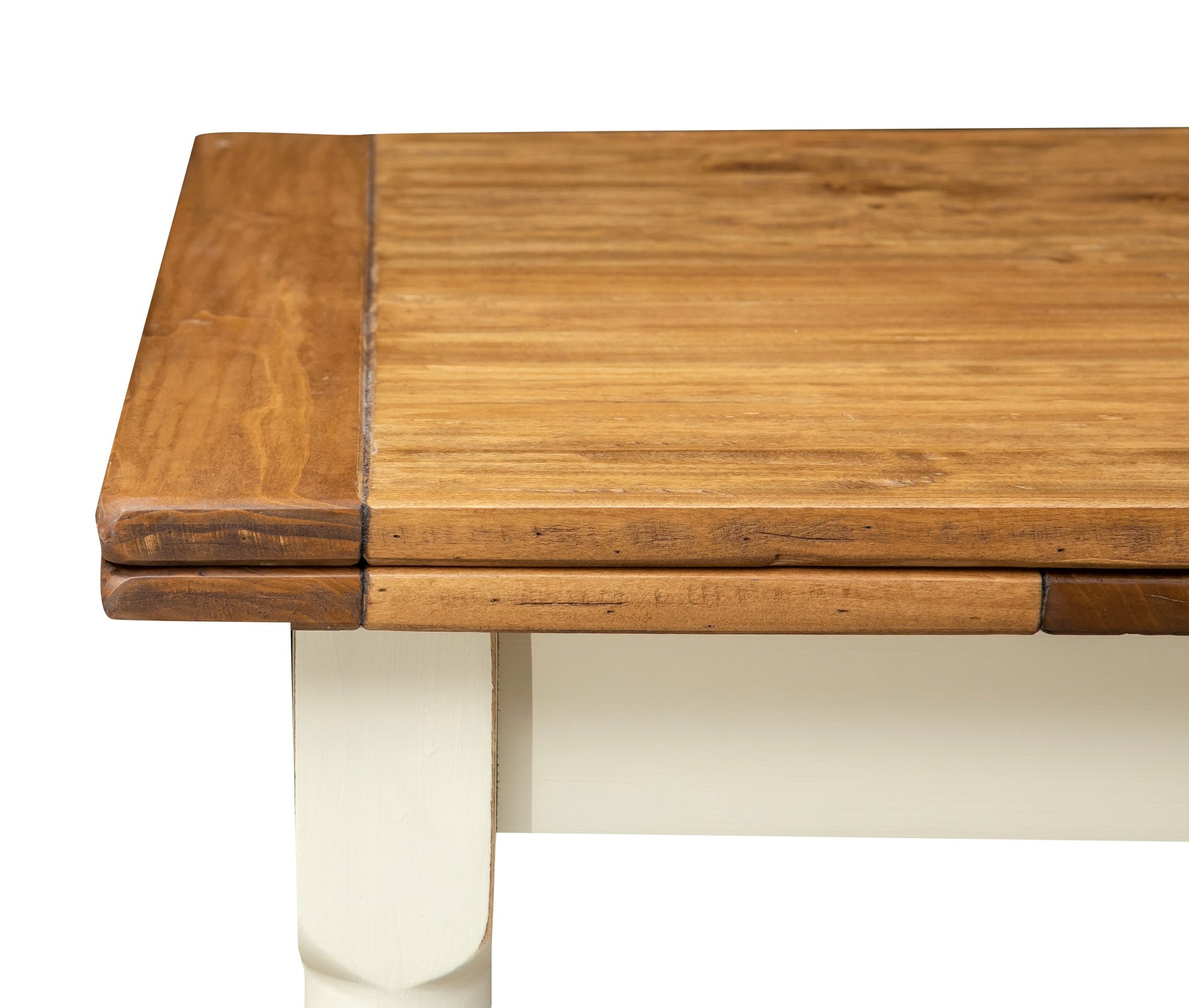Biscottini Tavolo Country allungabile in legno massello di tiglio struttura bianca anticata piano naturale. Made in Italy