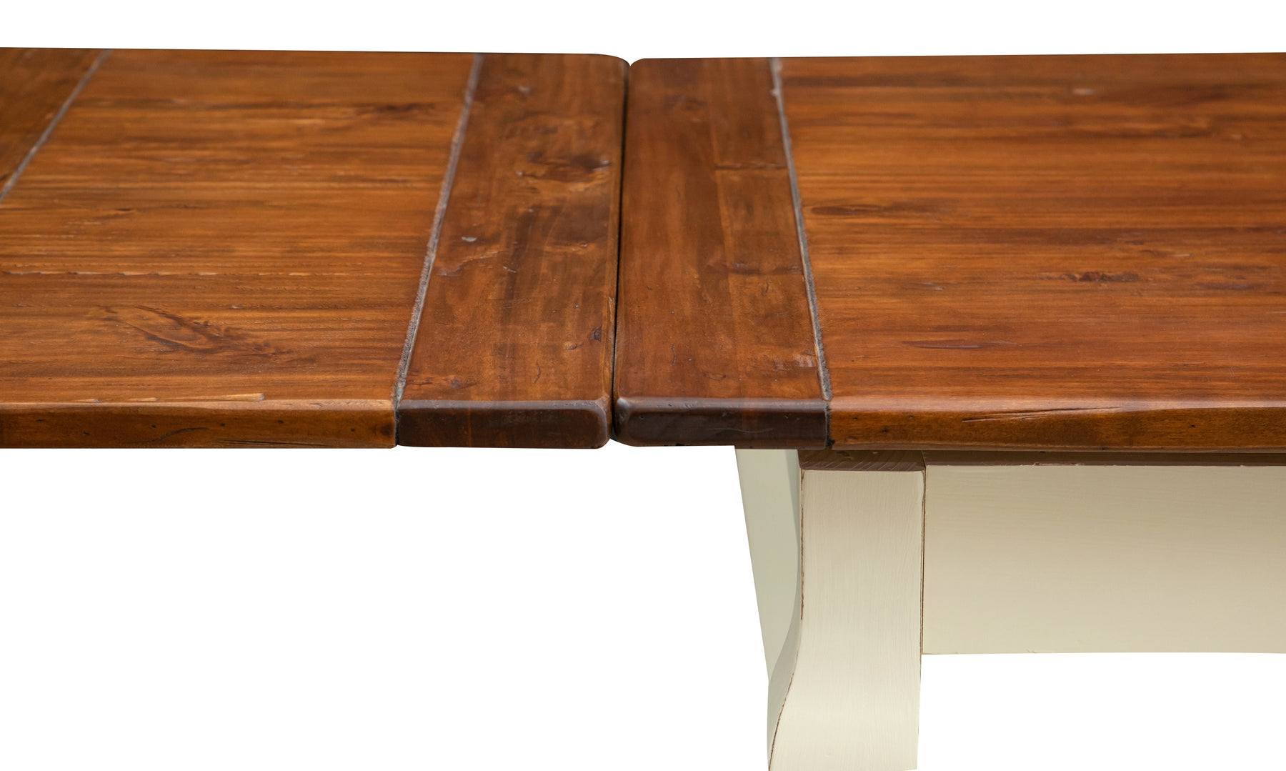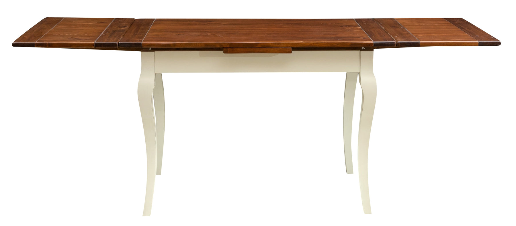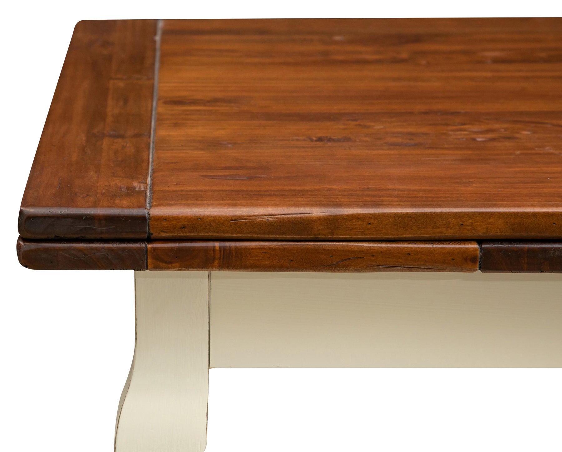 Biscottini Tavolo Country allungabile in legno massello di tiglio struttura bianca anticata piano noce Made in Italy