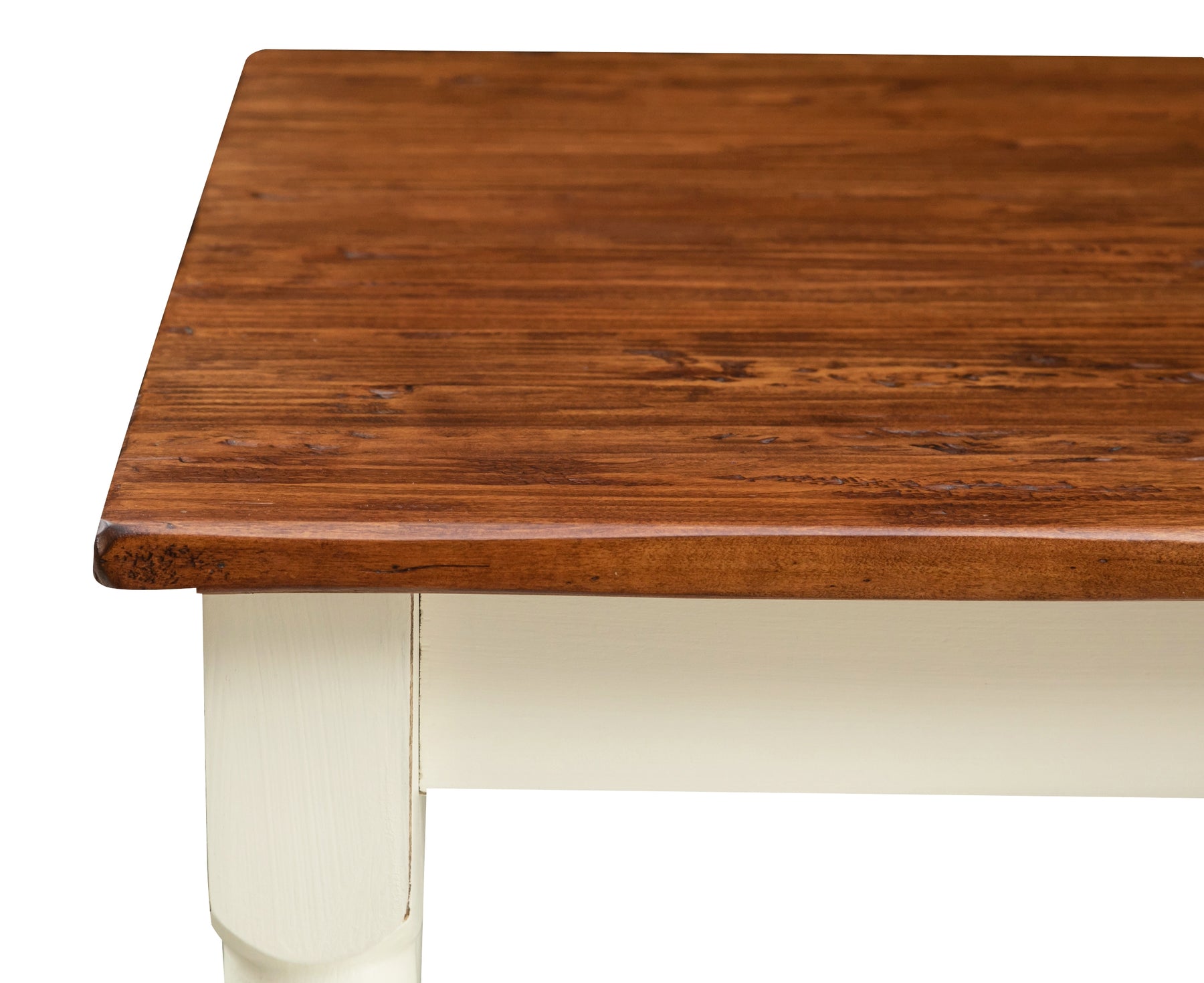 Biscottini Tavolo Country in legno massello di tiglio struttura bianca anticata piano noce. Made in Italy