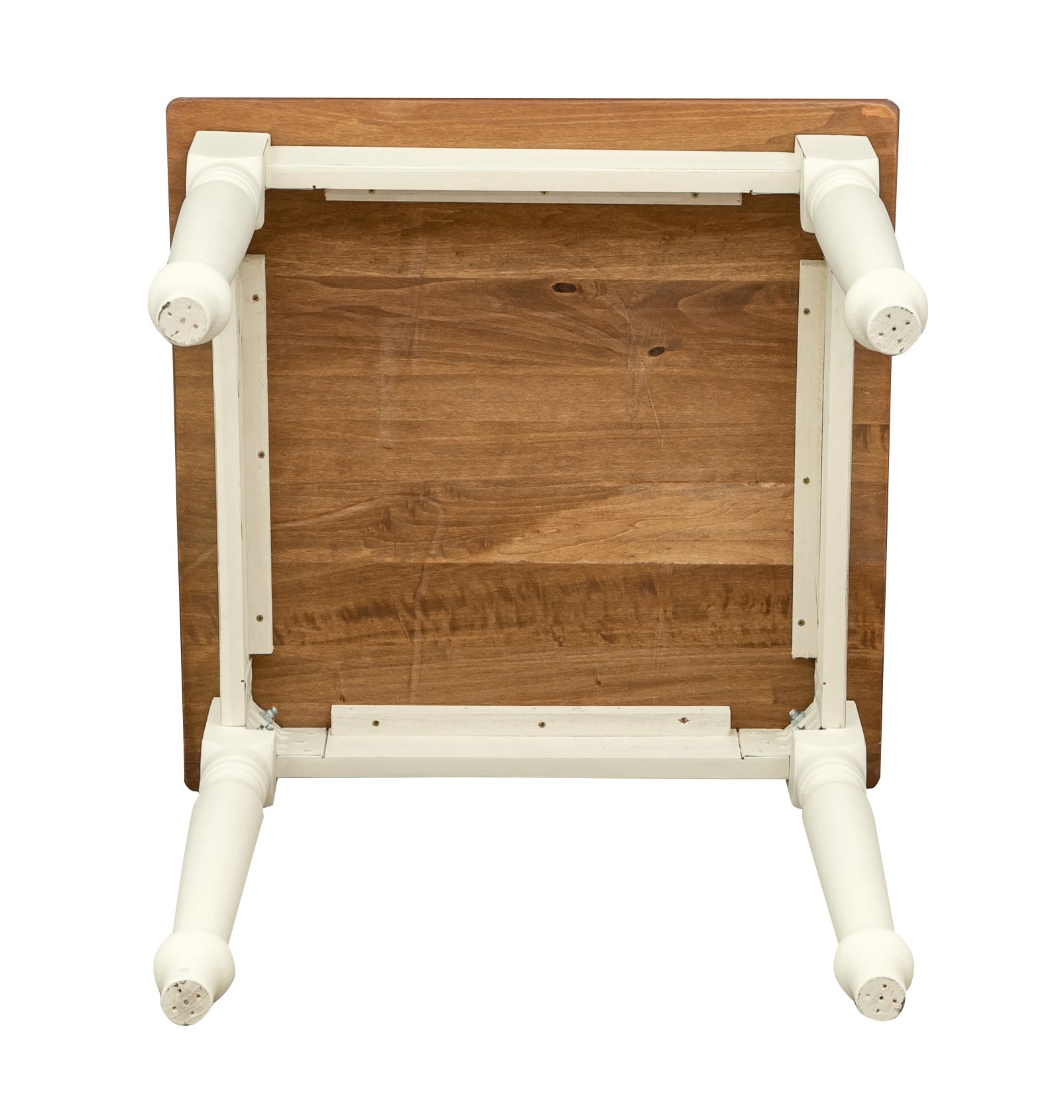 Tavolo quadrato interamente in legno massello di tiglio, di dimensioni lunghezza 80 cm, profondità 80 cm, altezza 78 cm. Qualità estetiche e solidità nel tempo sono garantite dalla accurata lavorazione Made in Italy. Il contrasto cromatico tra la struttura bianca ed il piano noce dona un fascino in stile Country ideale completamento per qualsiasi ambiente.