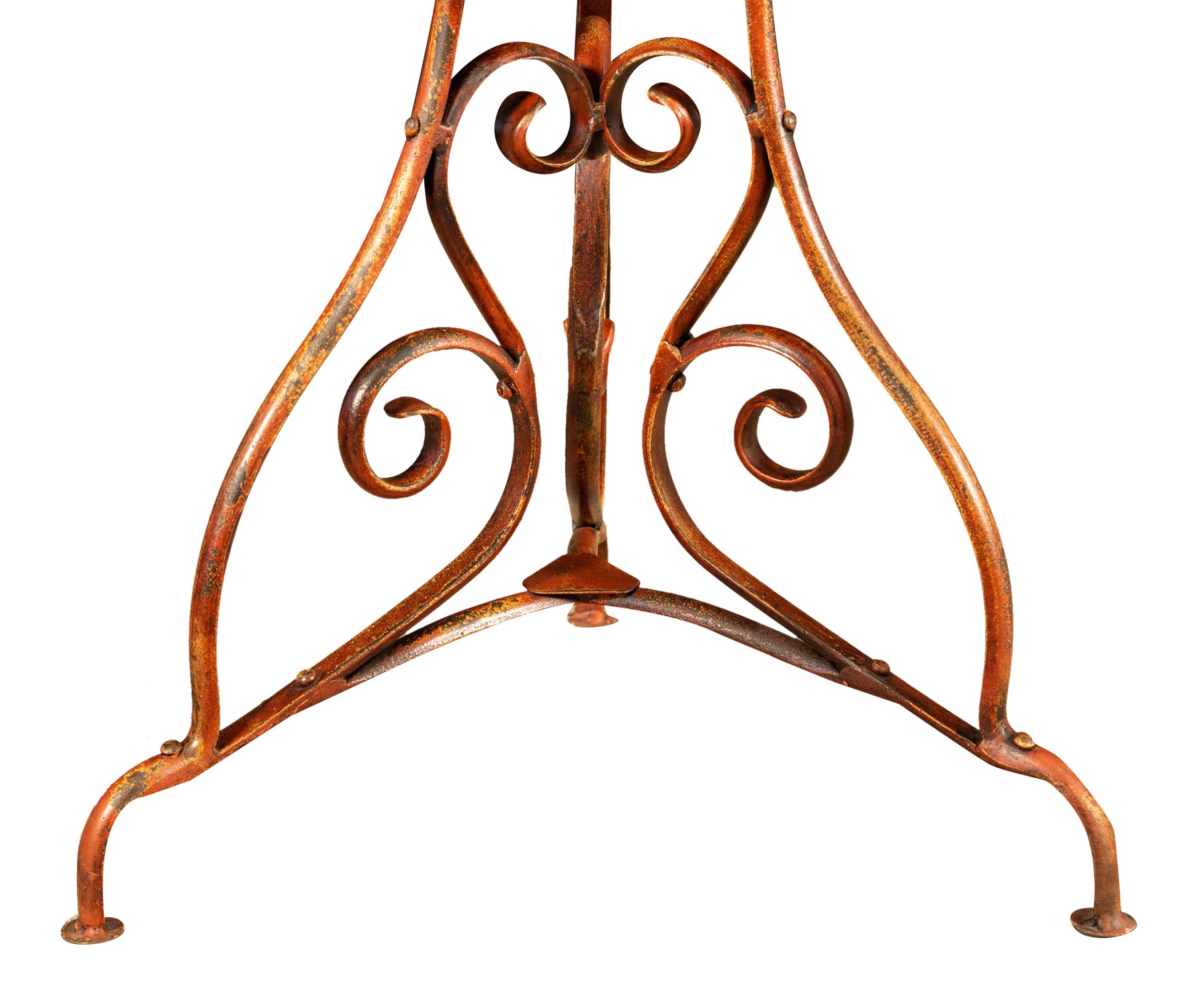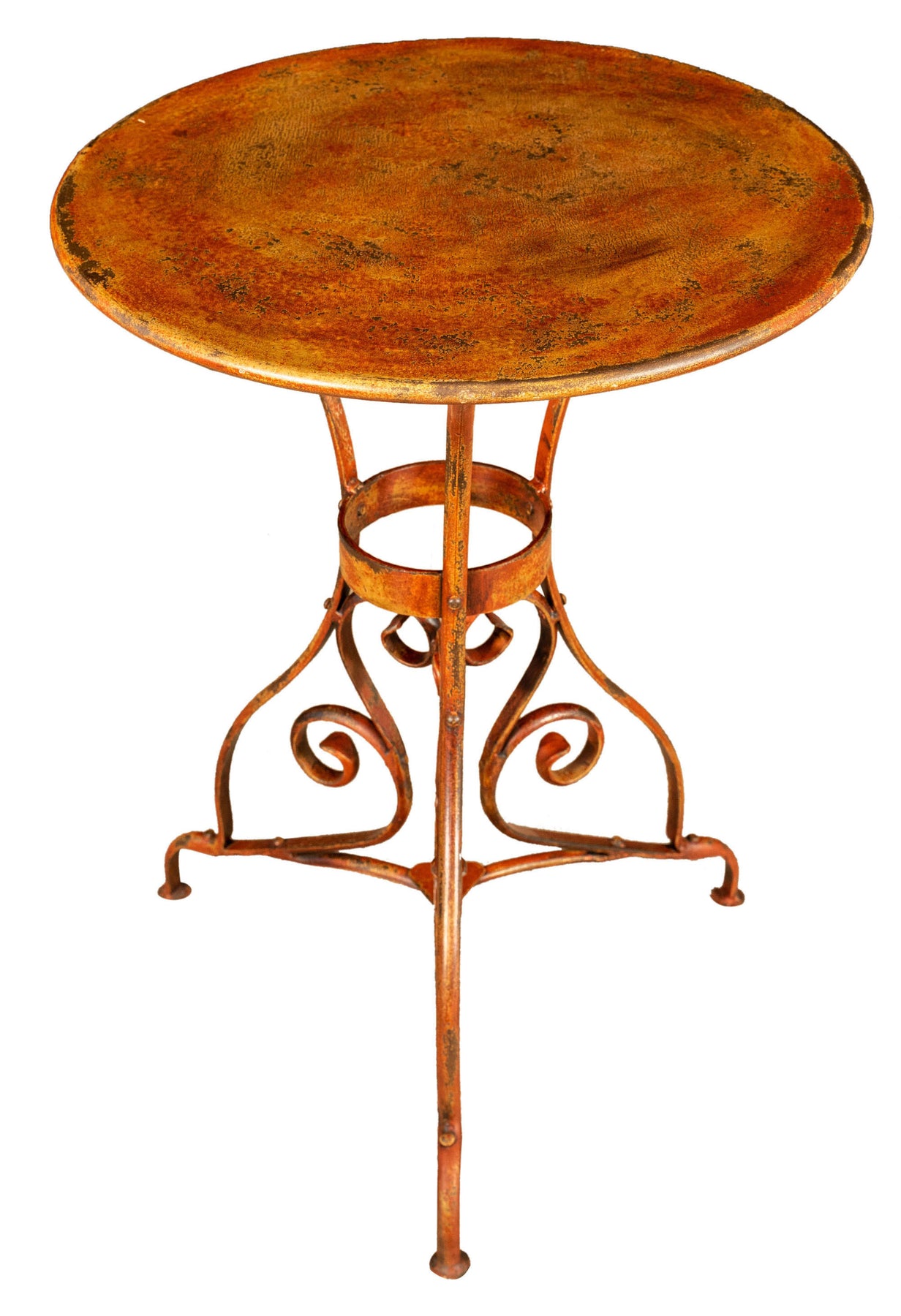 Tavolo in ferro battuto di dimensioni lunghezza 56 cm, profondità 56 cm, altezza 77 cm totalmente forgiata a mano, molto stabile e robusta con finitura dipinta e invecchiata a mano.