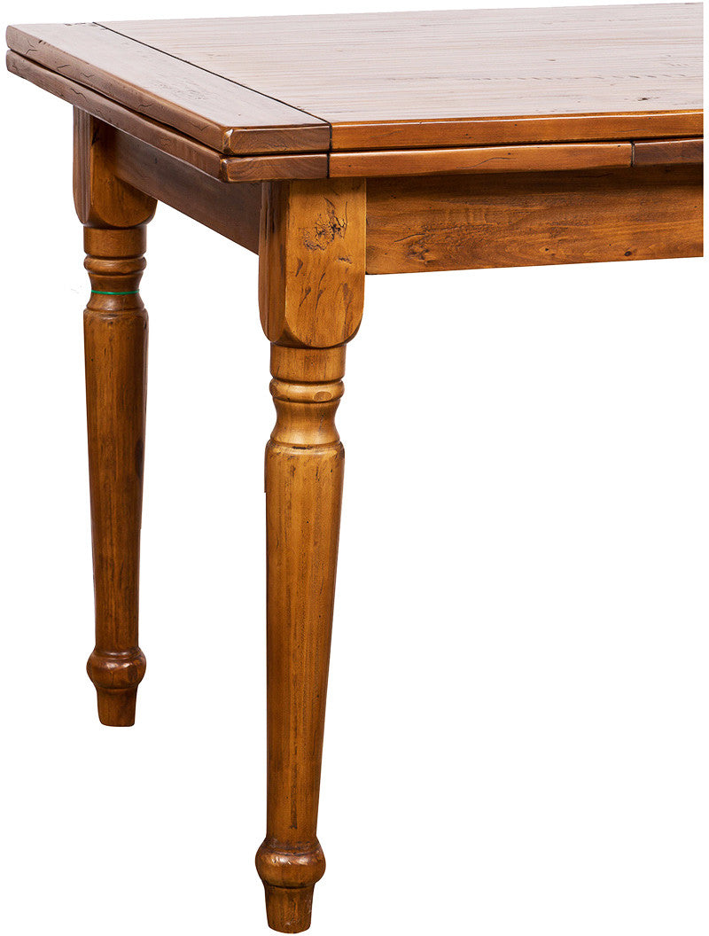 Tavolo rettangolare allungabile realizzato interamente in legno massello di tiglio dotato di due pratiche allunghe da 55 cm ciascuna che permettono di estenderlo fino a 215 o 270 cm. Tutto il fascino dello stile Country è racchiuso in questo tavolo grazie alle forme classiche, risultato di una scrupolosa lavorazione artigianale Made in Italy. Misure: lunghezza 160 cm profondità 90 cm altezza 80 cm. Con una allunga aperta: lunghezza 215 cm. Completamente aperto: lunghezza 270 cm.