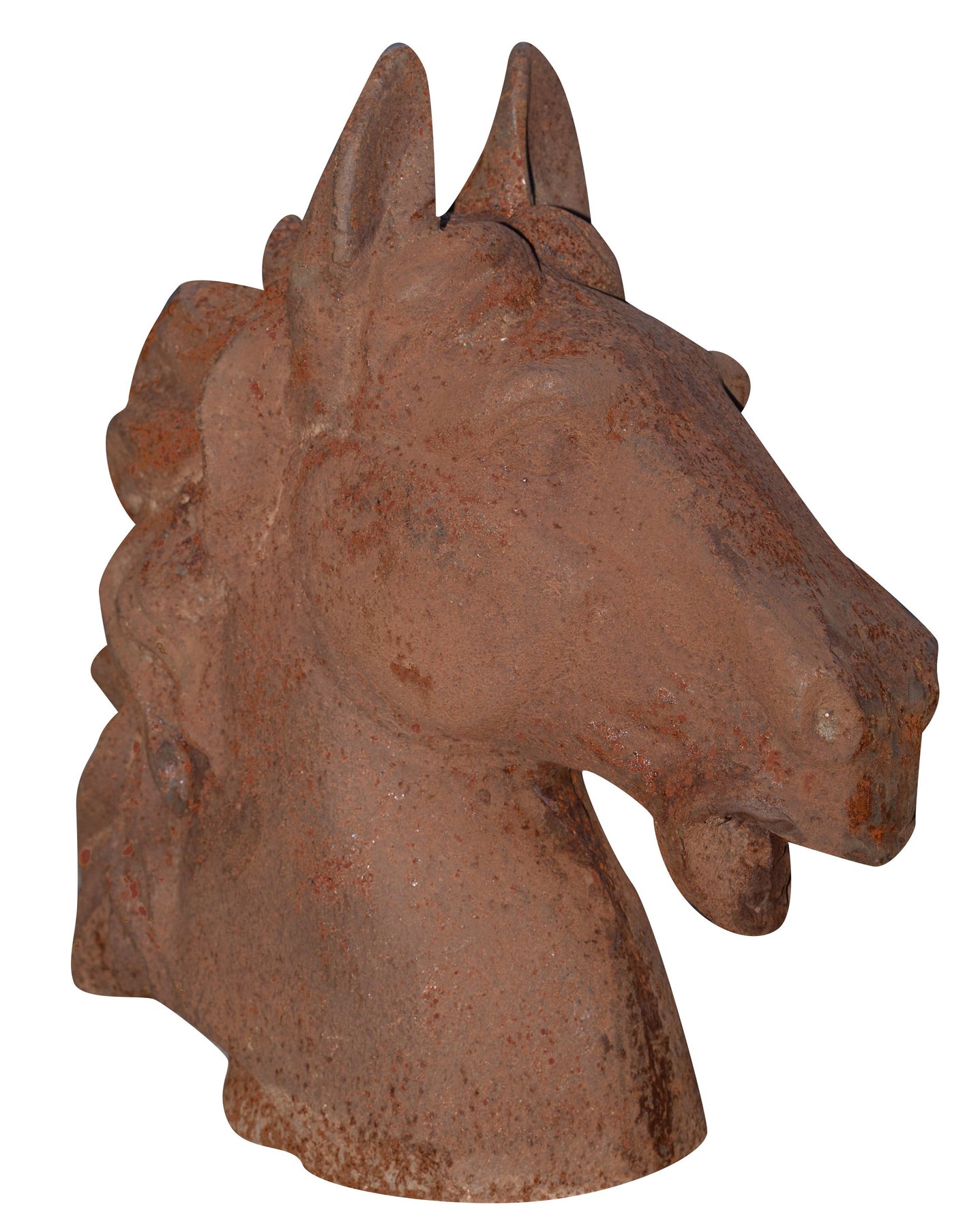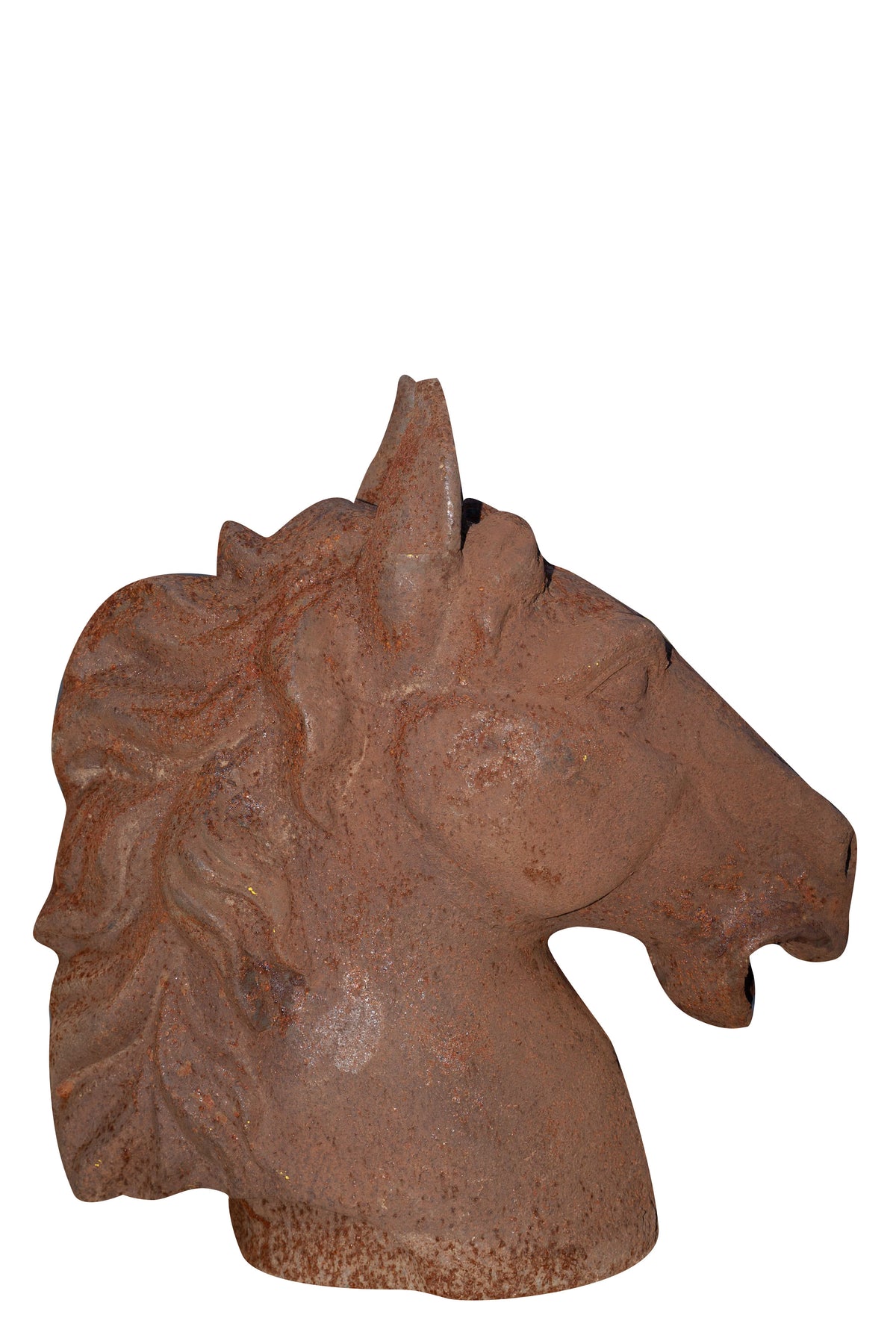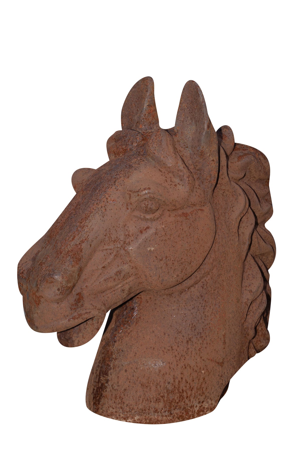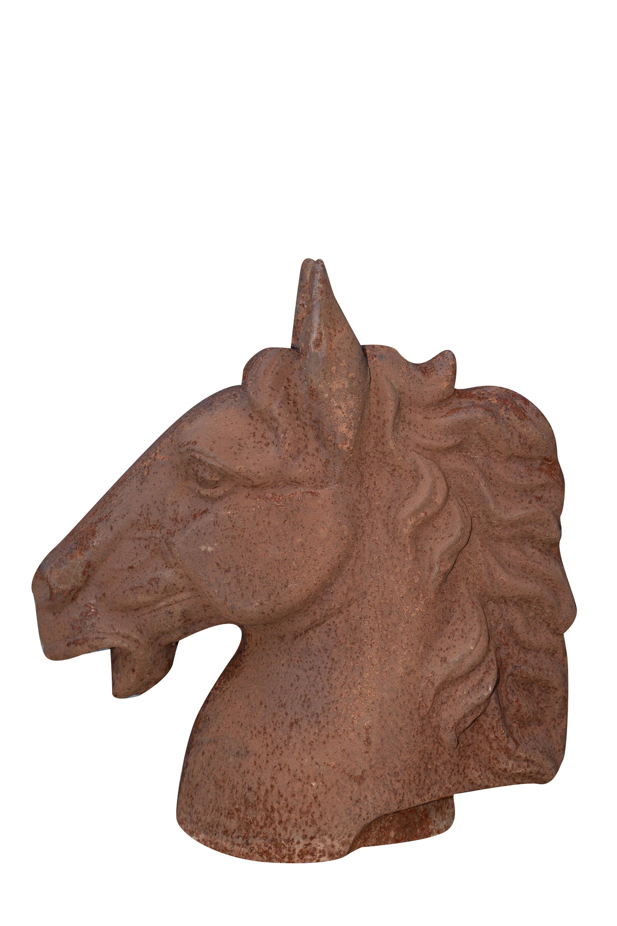 Testa di cavallo ornamentale di dimensioni larghezza 53 cm, profondità 24 cm, altezza 55 cm, realizzata in ghisa. Curata nei minimi dettagli, si abbina a qualsiasi ambiente. Tutte le misure si riferiscono all'ingombro massimo dell'articolo.