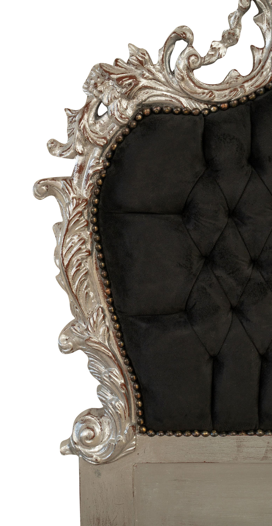 La testata da letto di dimensioni lunghezza 172 cm, profondità 7 cm, altezza 170 cm in legno massello di faggio personalizzerà la tua camera nel modo più bello. La sua solida struttura è rivestita da un tessuto imbottito artigianalmente ed è in argento anticato. Uno stile classico perfettamente rivisitato che vestirà il tuo letto di una nota raffinata e seducente.