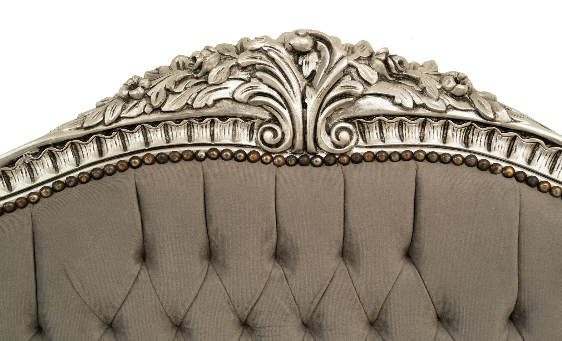 La testata da letto di dimensioni lunghezza 171 cm, profondità 6 cm, altezza 153 cm in legno massello di faggio personalizzerà la tua camera nel modo più bello. La sua solida struttura è rivestita da un tessuto imbottito artigianalmente ed è in argento. Uno stile classico perfettamente rivisitato che vestirà il tuo letto di una nota raffinata e seducente.