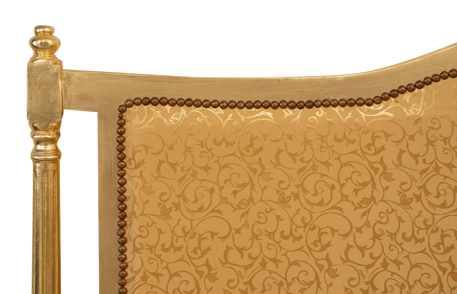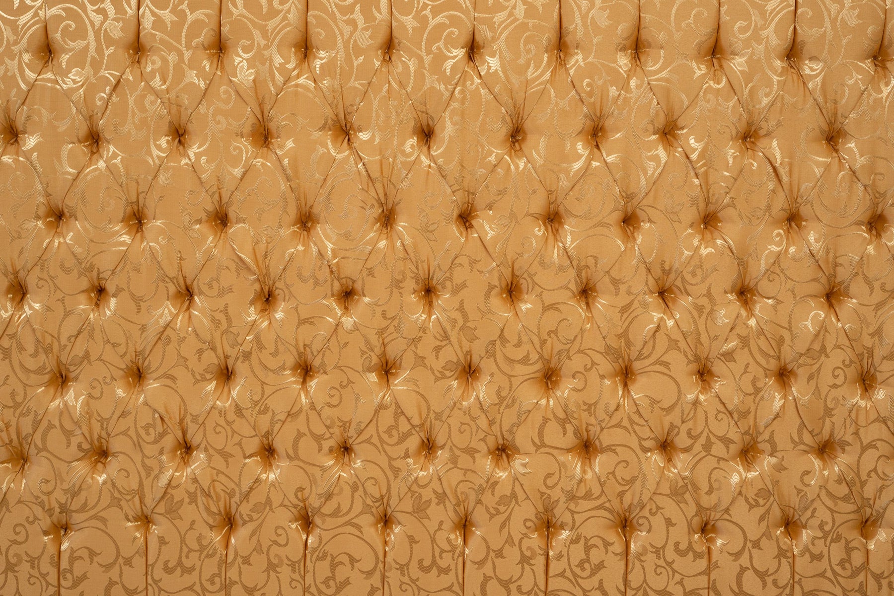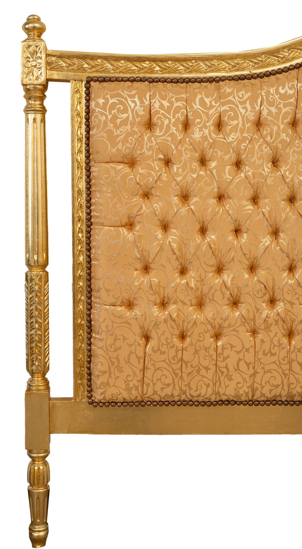 La testata da letto di dimensioni lunghezza 180 cm, profondità 6 cm, altezza 134 cm in legno massello di faggio personalizzerà la tua camera nel modo più bello. La sua solida struttura è rivestita da un tessuto imbottito artigianalmente ed è in foglia oro. Uno stile classico perfettamente rivisitato che vestirà il tuo letto di una nota raffinata e seducente.