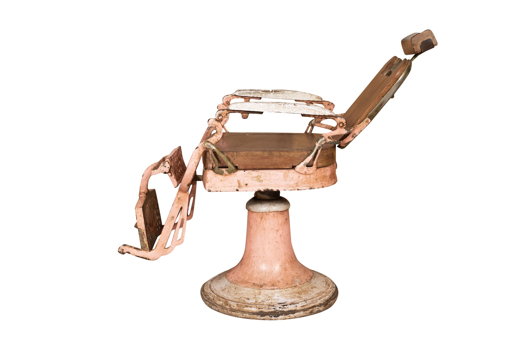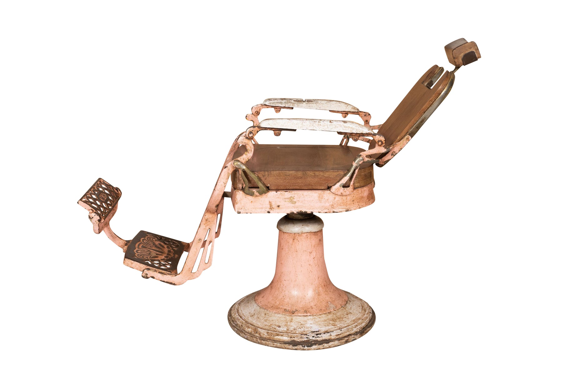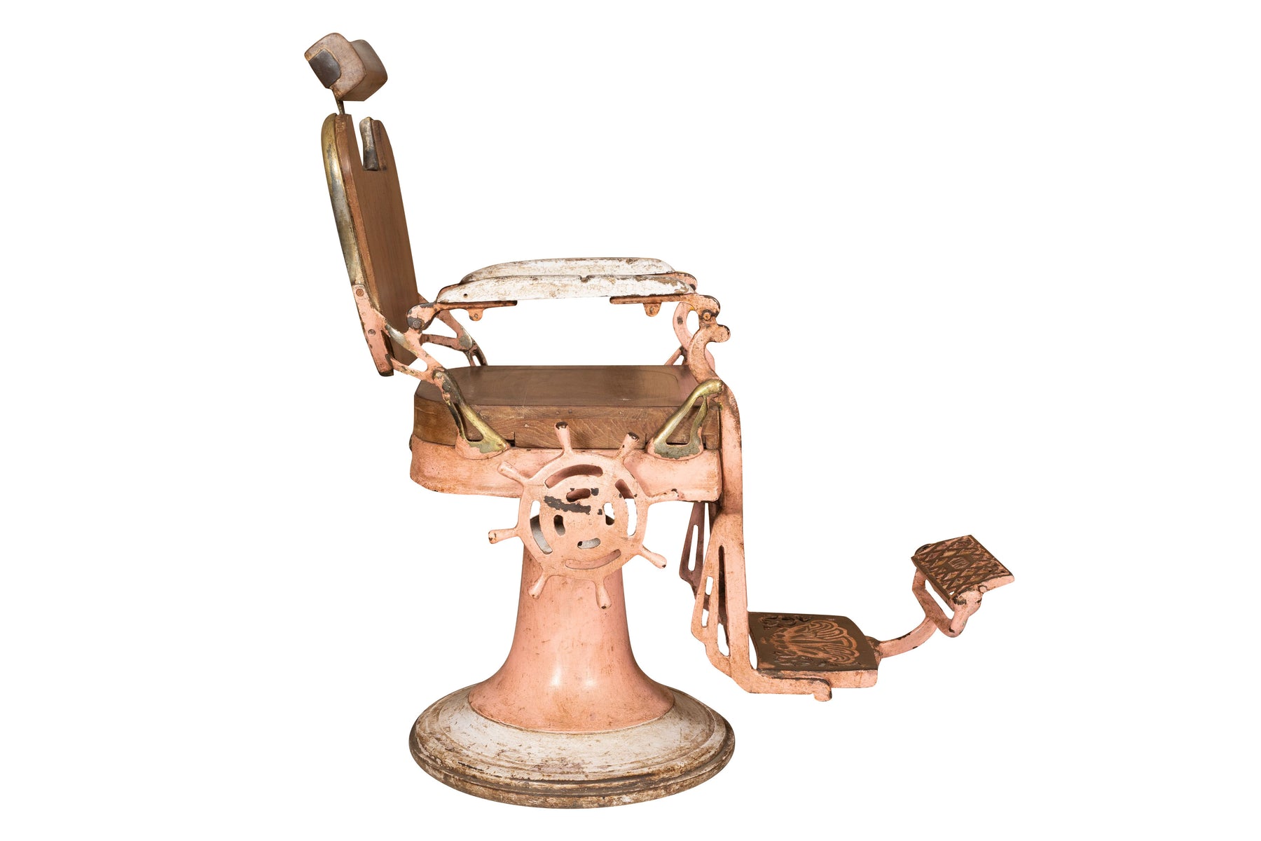 Biscottini Vecchia sedia poltrona da barbieri restaurata Antica seduta dimensioni Offerta