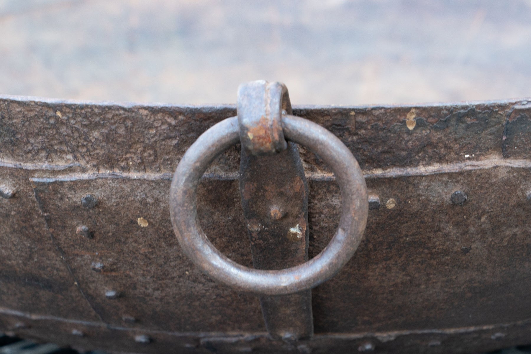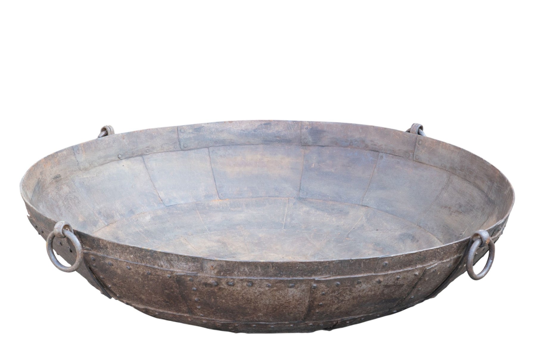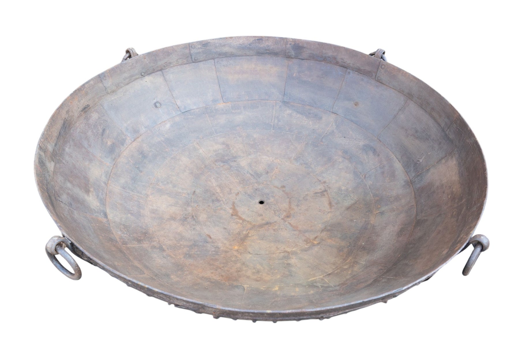 Vecchio contenitore /crogiolo di dimensioni diametro 144 cm , altezza 39 cm. Realizzato in ferro battuto , lavorato interamente a mano, può essere utilizzato anche come originale barbecue, braciere, fioriera, vasca per ninfee.. o come semplice decorazione. Tutte le misure si riferiscono all'ingombro massimo dell'articolo.