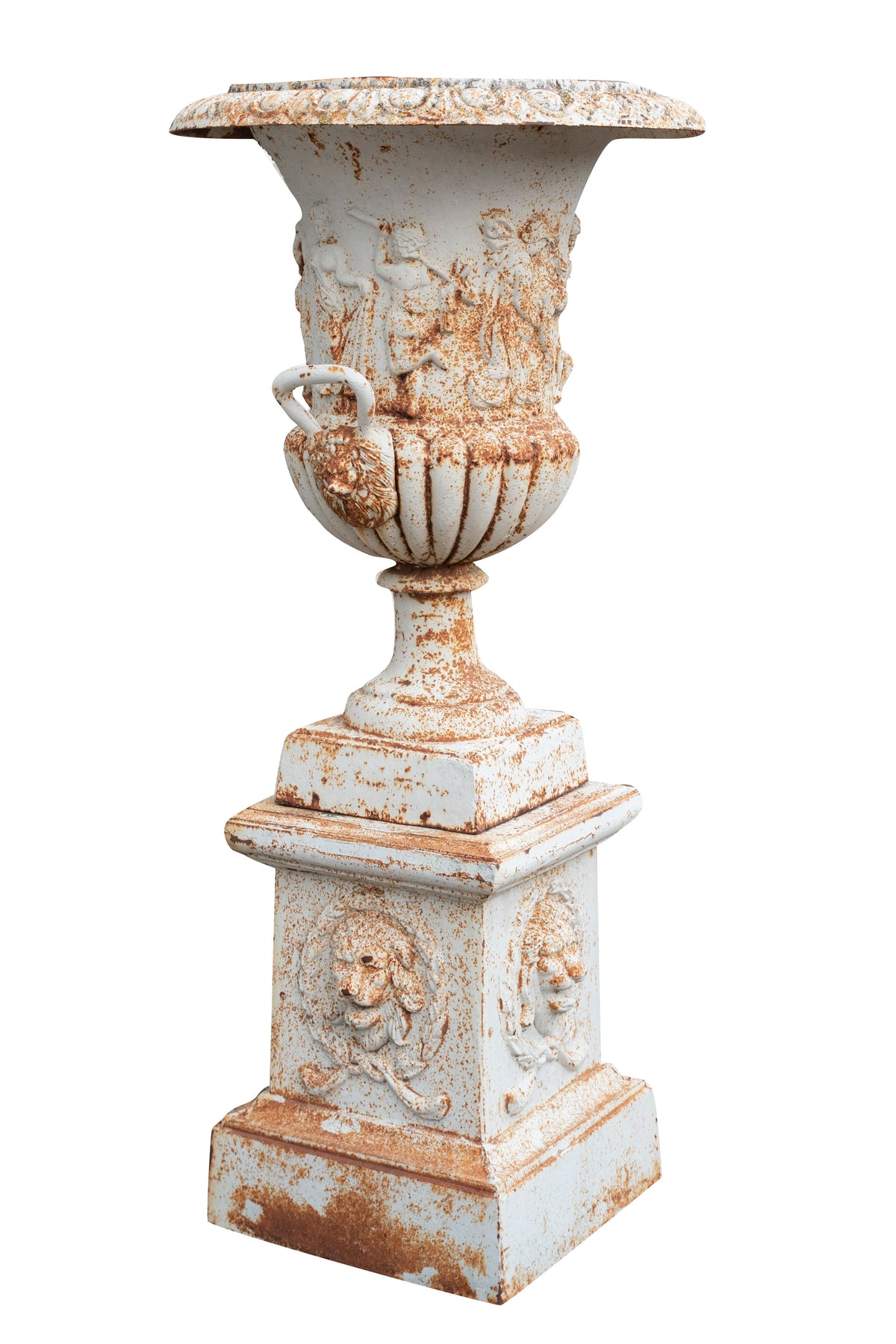 Molto stabile e robusto set in fusione di ghisa composto da un vaso a calice di dimensioni diametro 74 cm e altezza 100 cm, posto su una base di dimensioni diametro 47 cm, altezza 62 cm. Sia il vaso che la base presentano eleganti decori con motivi a rilievo, arricchendo gli arredi esterni di privati e aziende . Essendo un pezzo unico, verrà consegnato esattamente quello mostrato in foto. Non si può non lasciarsi stregare dall'infinito assortimento di articoli di arredo interni ed arredo esterni proposti da Biscottini per arredare. Idee per la casa, per decorare casa, per arredare casa, per l'arredo giardino, per le decorazioni giardino e tanti mobili in legno per l'arredamento cucina, l'arredamento soggiorno, l'arredamento camere da letto, per l'arredo bagno e per l'arredo ufficio.