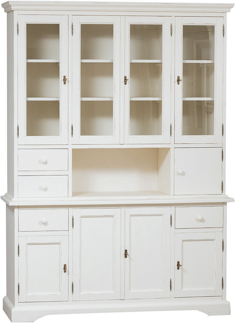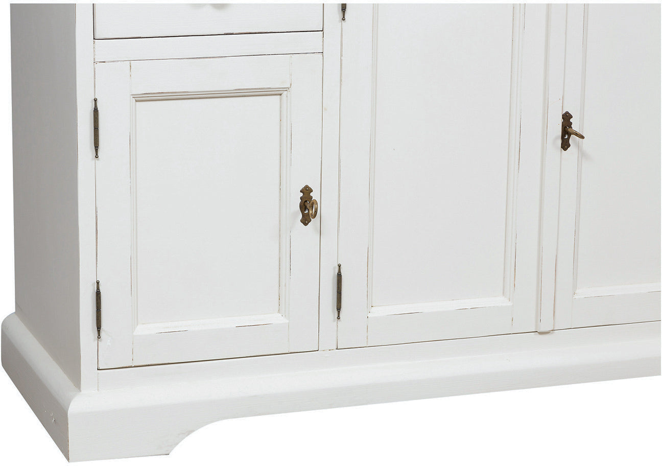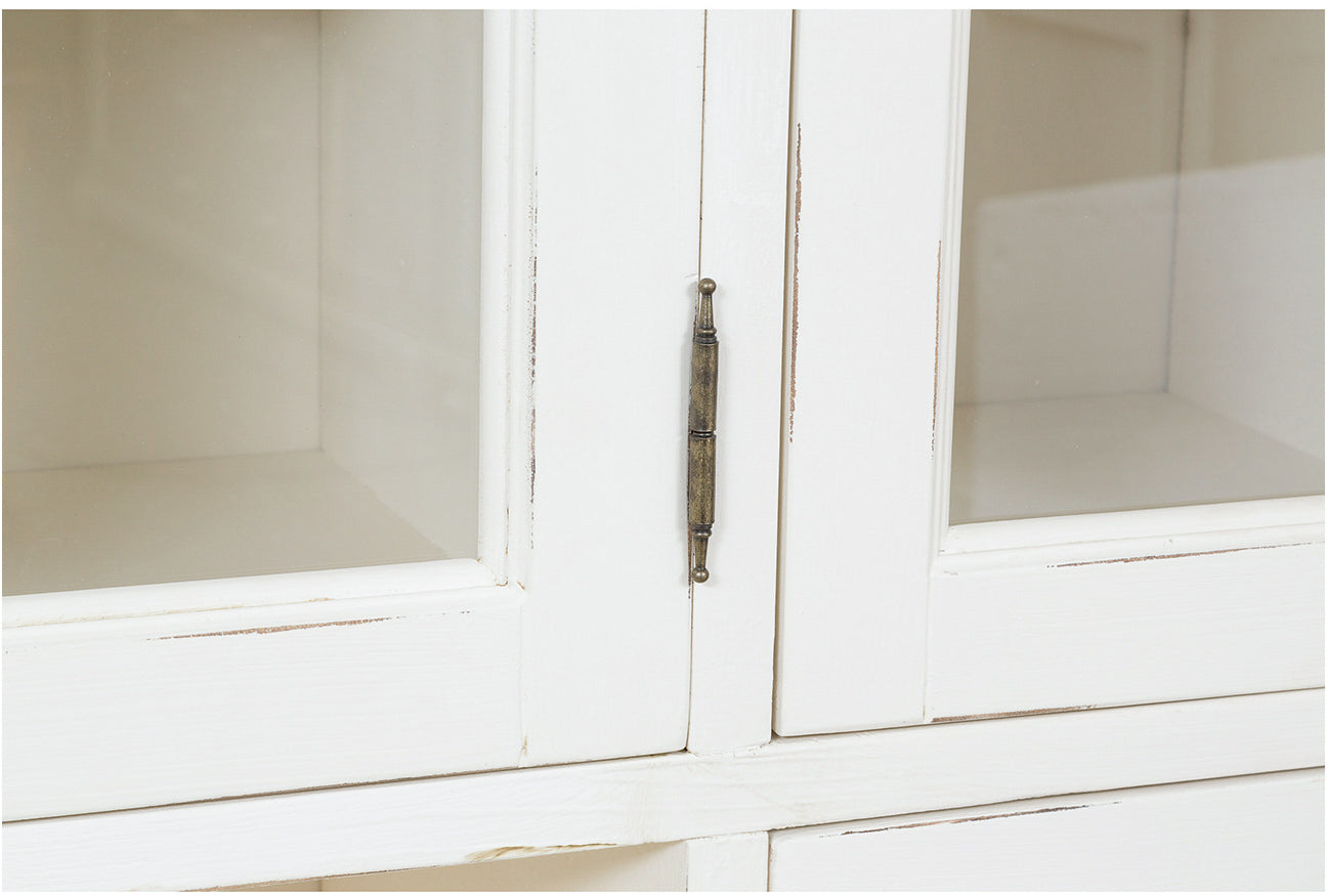 Biscottini Vetrina Country in legno massello di tiglio finitura bianca anticata L156xPR50xH200 cm. Made in Italy