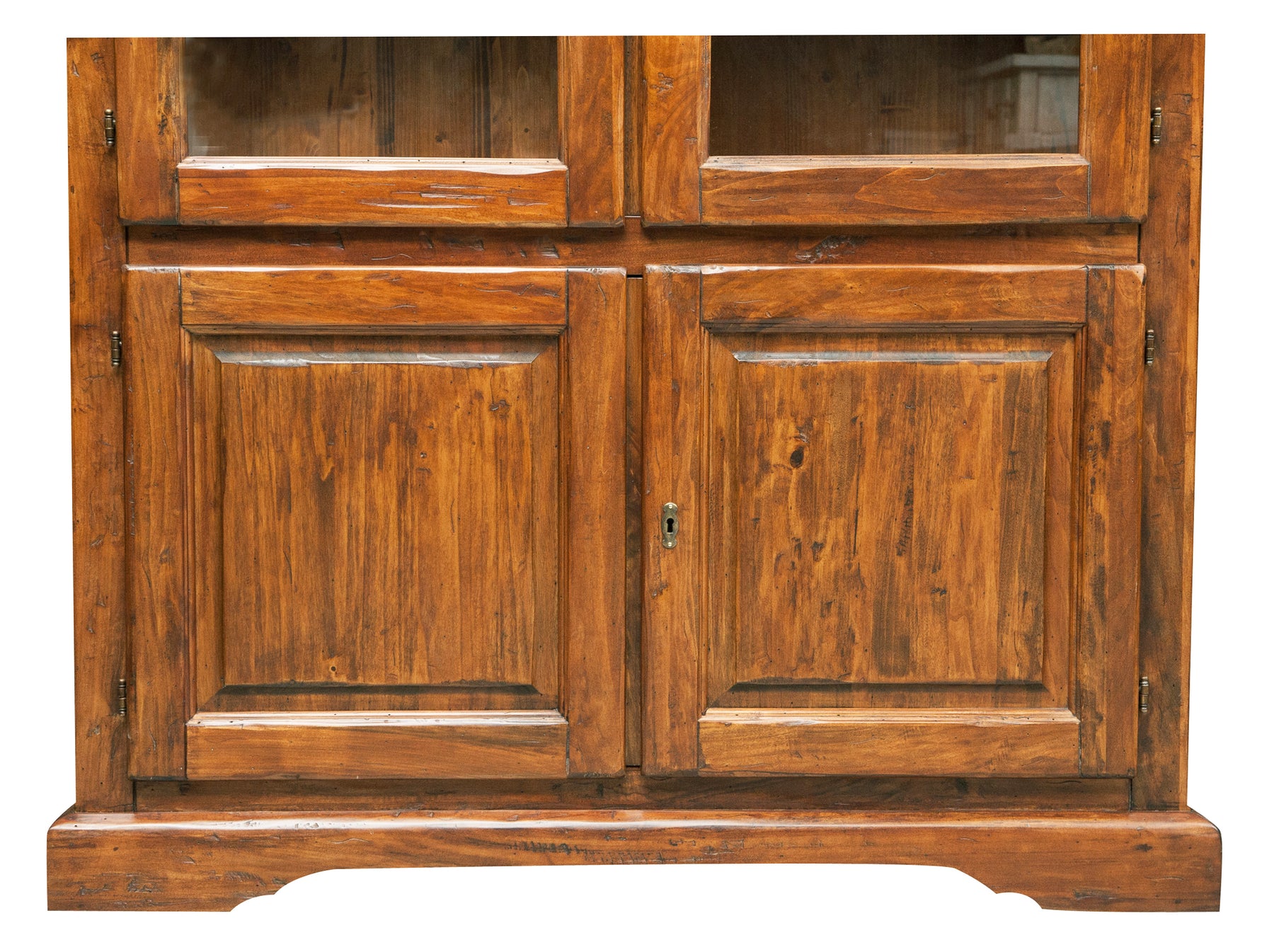Vetrina in legno massello di tiglio larghezza 120 cm, profondità 37 cm, altezza 197 cm, dotata di due ampi ripiani con chiusura a doppia anta nella parte inferiore e di tre comodi ripiani nella parte superiore. Dal design raffinato e in stile Country, grazie all'accurata lavorazione artigianale Made in Italy, dona un tocco di inconfondibile romanticismo a qualsiasi ambiente.