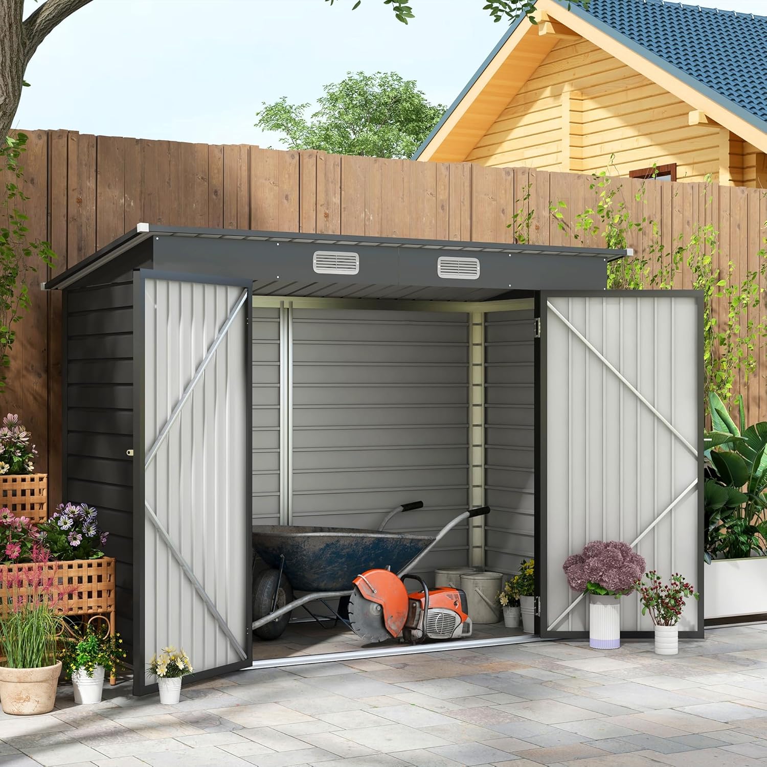 • IN ACCIAIO: La struttura del nostro capanno porta attrezzi da giardino è realizzata in metallo robusto e stabile, adatto all'uso esterno nel corso delle diverse stagioni
